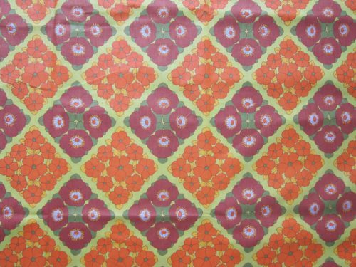 オレンジ色のレトロ花ヴィンテージファブリック 幅148cm