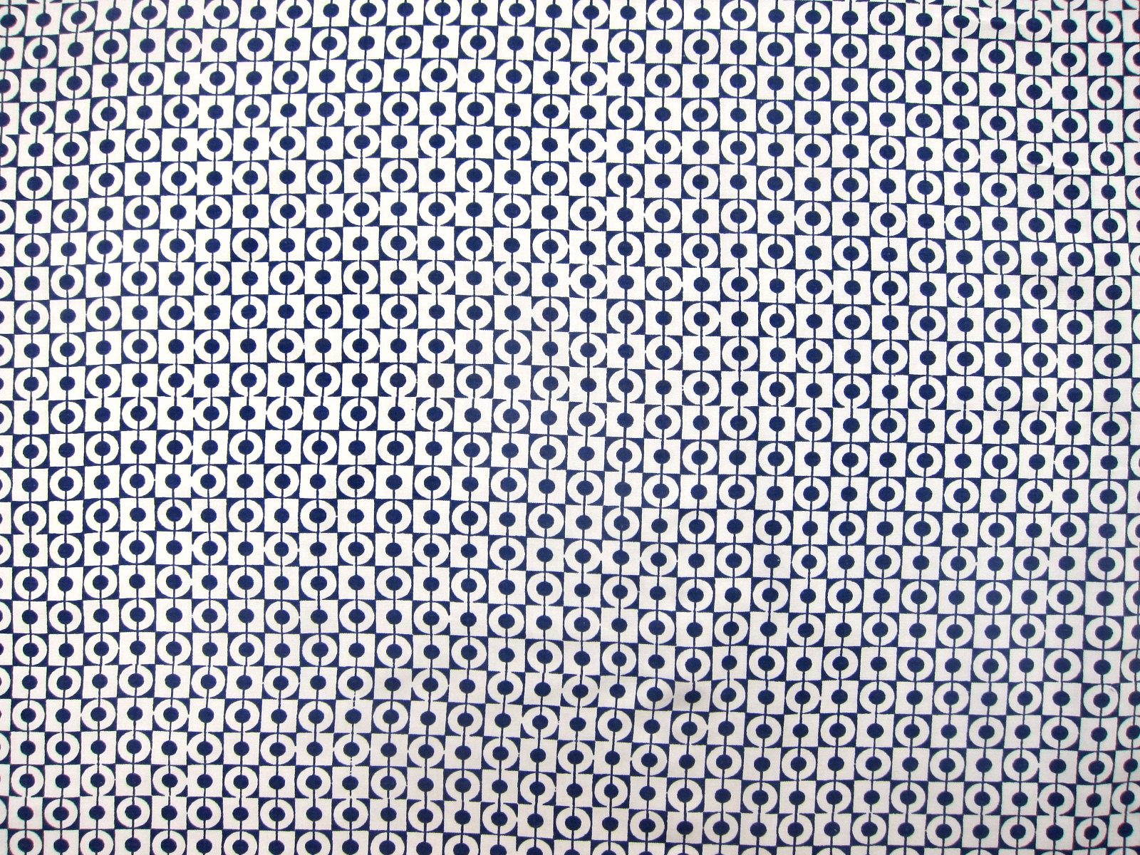 円と四角を直線で繋いだダークブルー単色の幾何学模様がレトロな雰囲気。