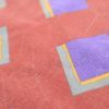 紫の四角が並んだえんじカラーのレトロファブリック。