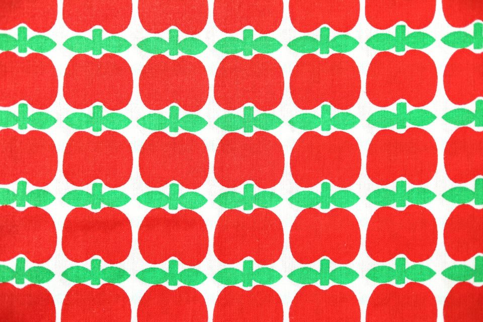 ぷっくりとした赤いリンゴが連なったポップなレトロ柄ビンテージファブリック。