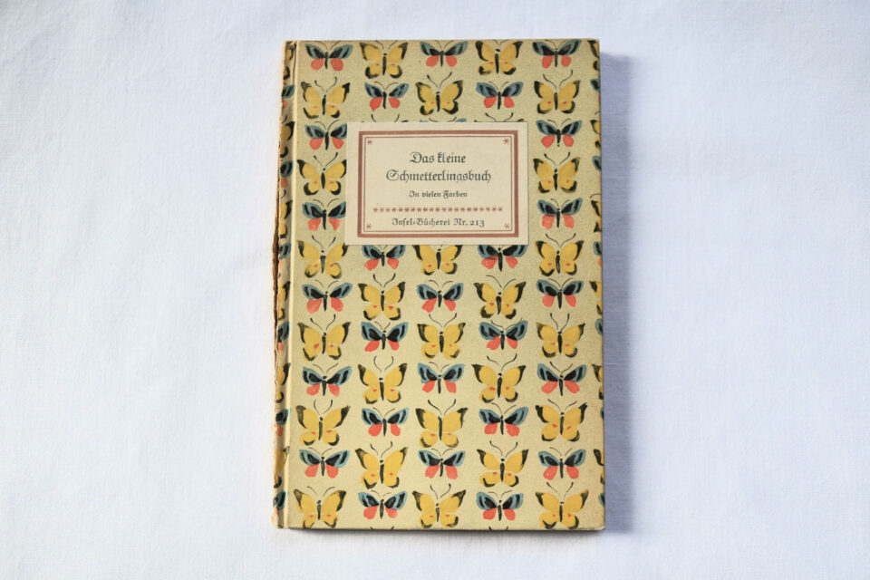 おなじみインゼル文庫の213番、Das kleine Schmetterlingsbuch。 蝶々の図鑑で、リアルに細かくカラーで紹介されています。 カラーのページは24ページです。