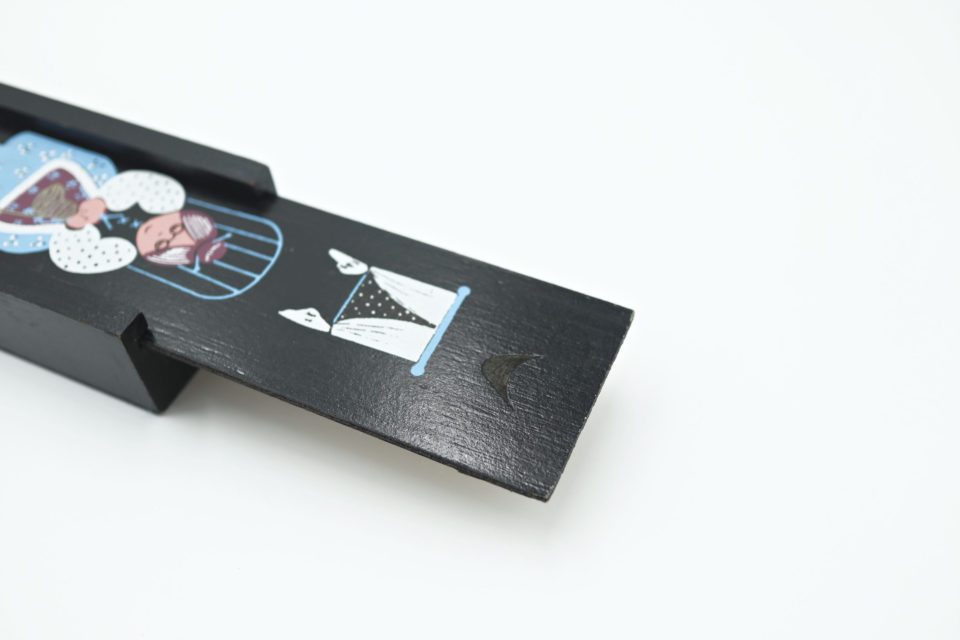 蚤の市で見つけたレトロな編み針ケース。 木製で、蓋はスライド式で開閉します。
