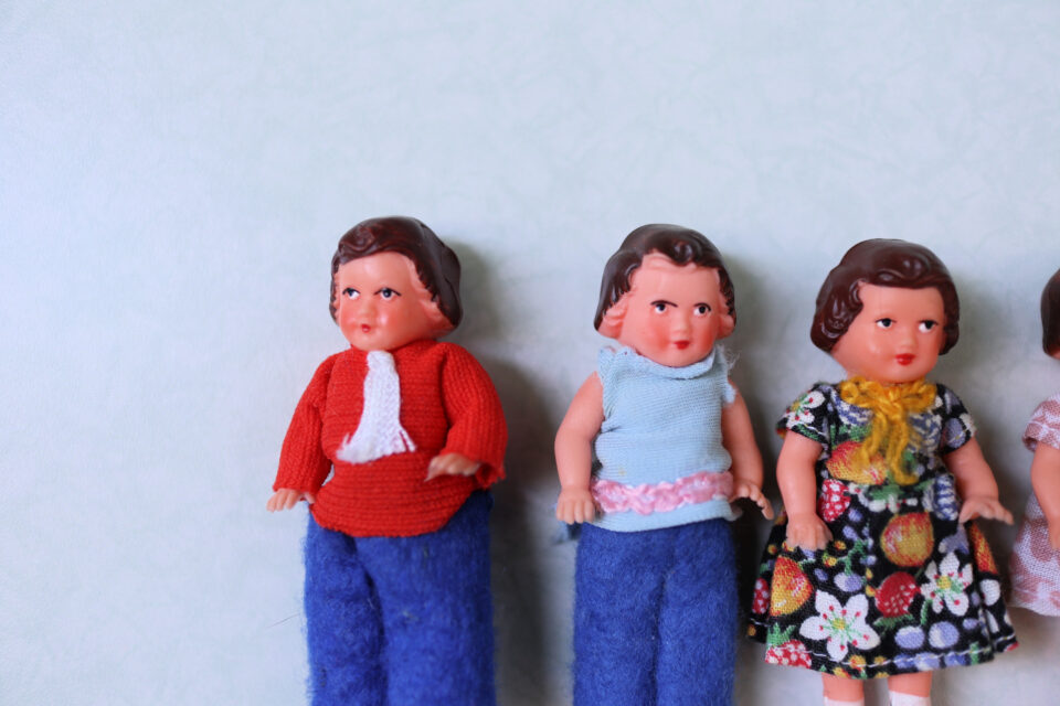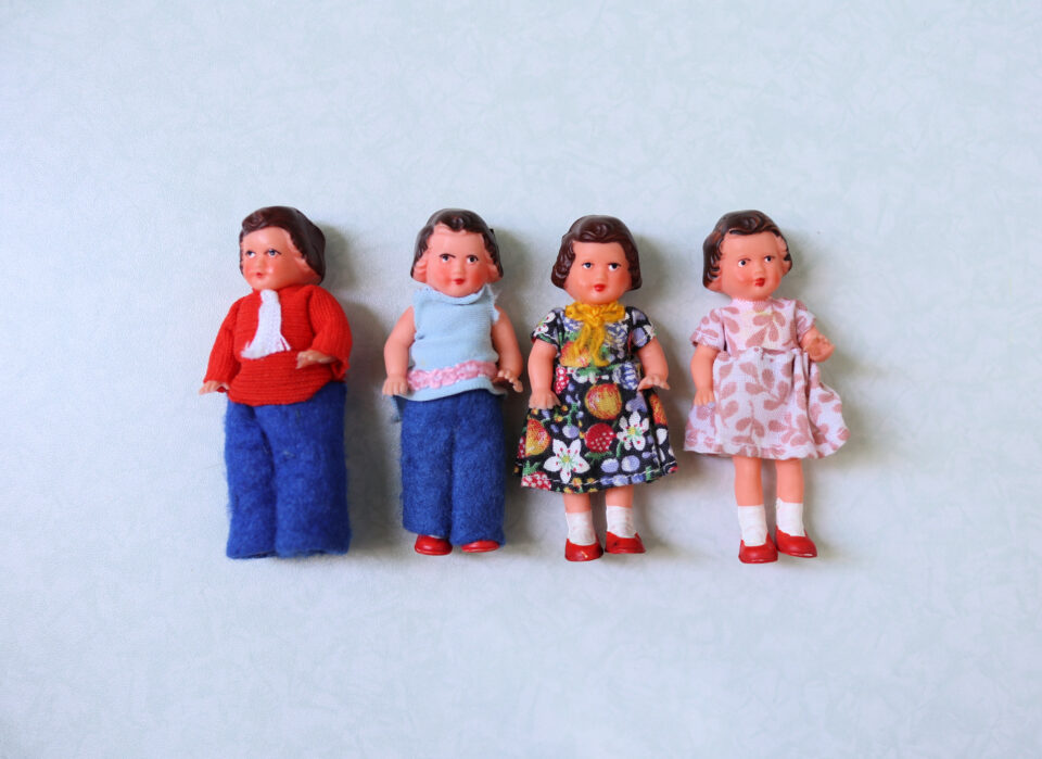 通称ARIドールで知られる旧東ドイツ時代のお人形。 ドールハウス用のドールで、男の子1体と女の子3体のセット。 ゲルマン系の顔つきをしたドイツらしいドールです。