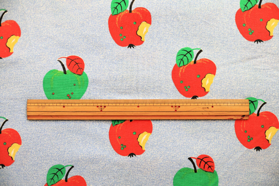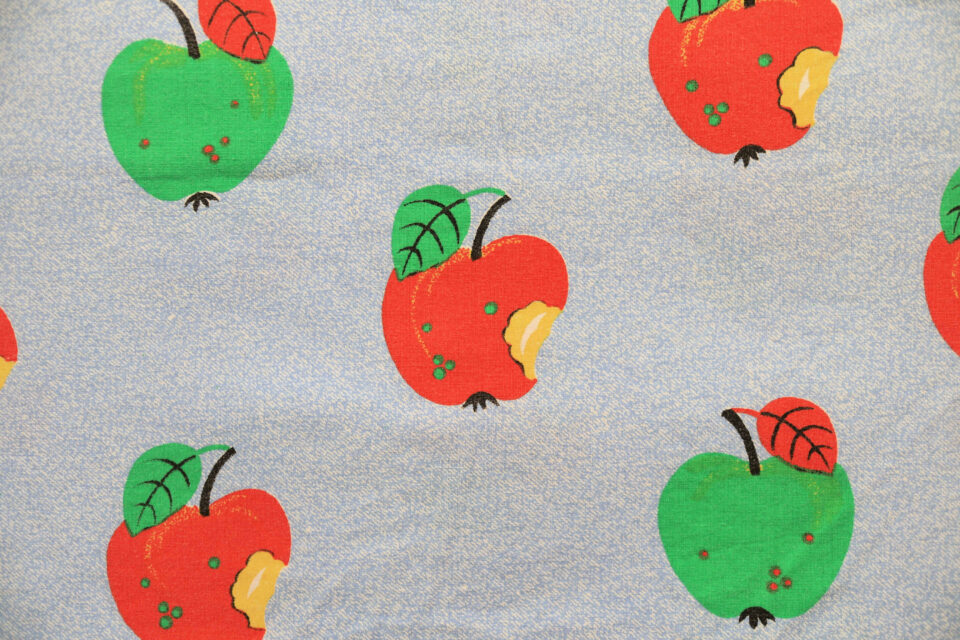 赤と緑の二色で描かれたユニークなアップル模様のレトロファブリック。