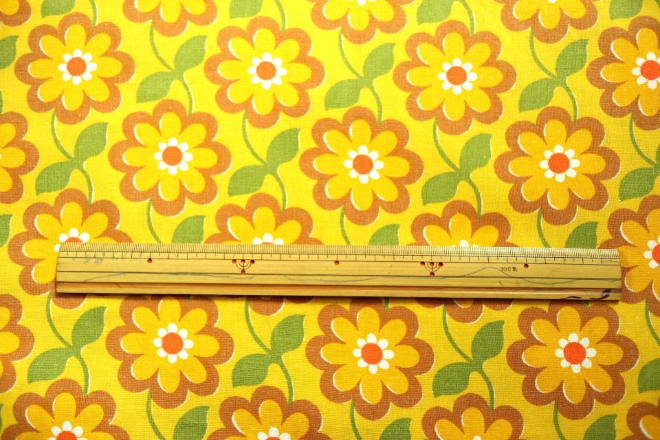 人気のマスタードカラーのヴィンテージ布。 連続花柄パターンで、使いやすい柄です。