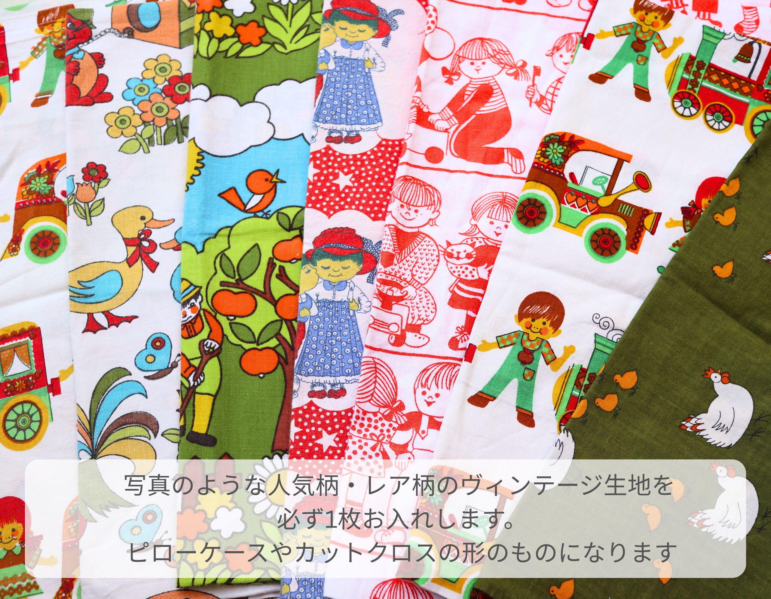 人気柄・レア柄のヴィンテージ生地を必ず1枚お入れします。