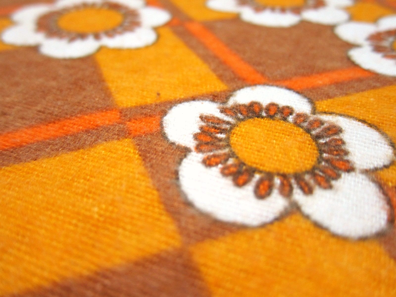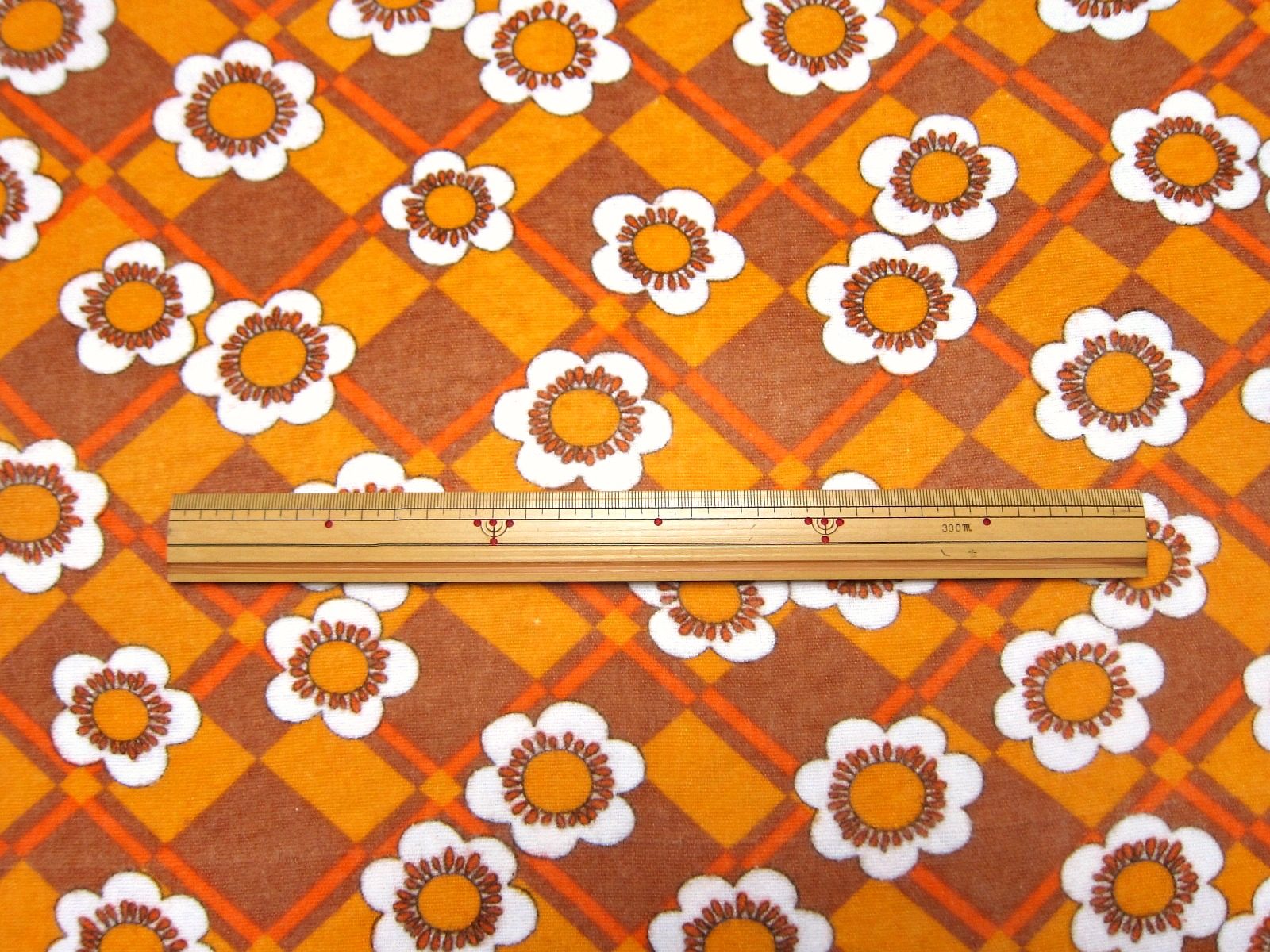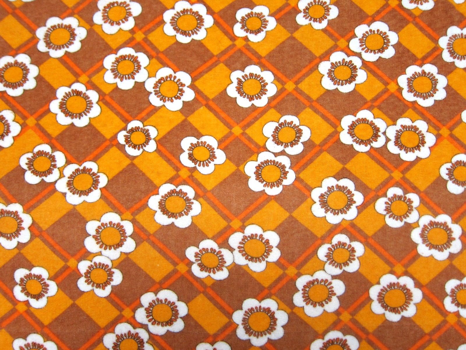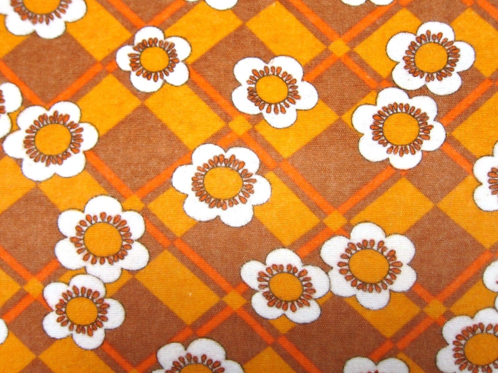 モコモコしたあったか素材の70年代ヴィンテージ生地。 茶色の暖色系で、レトロなお花のモチーフが入ったノスタルジックなパターンです。