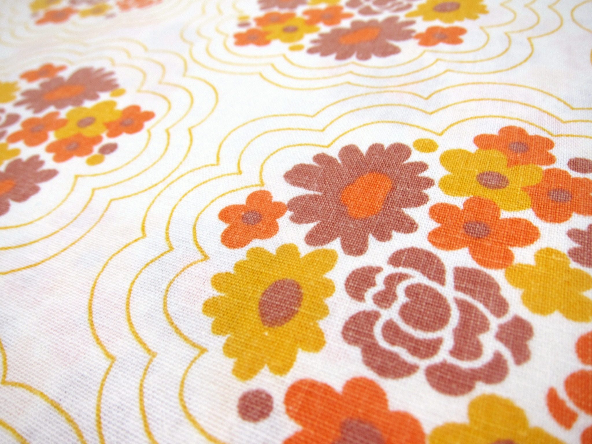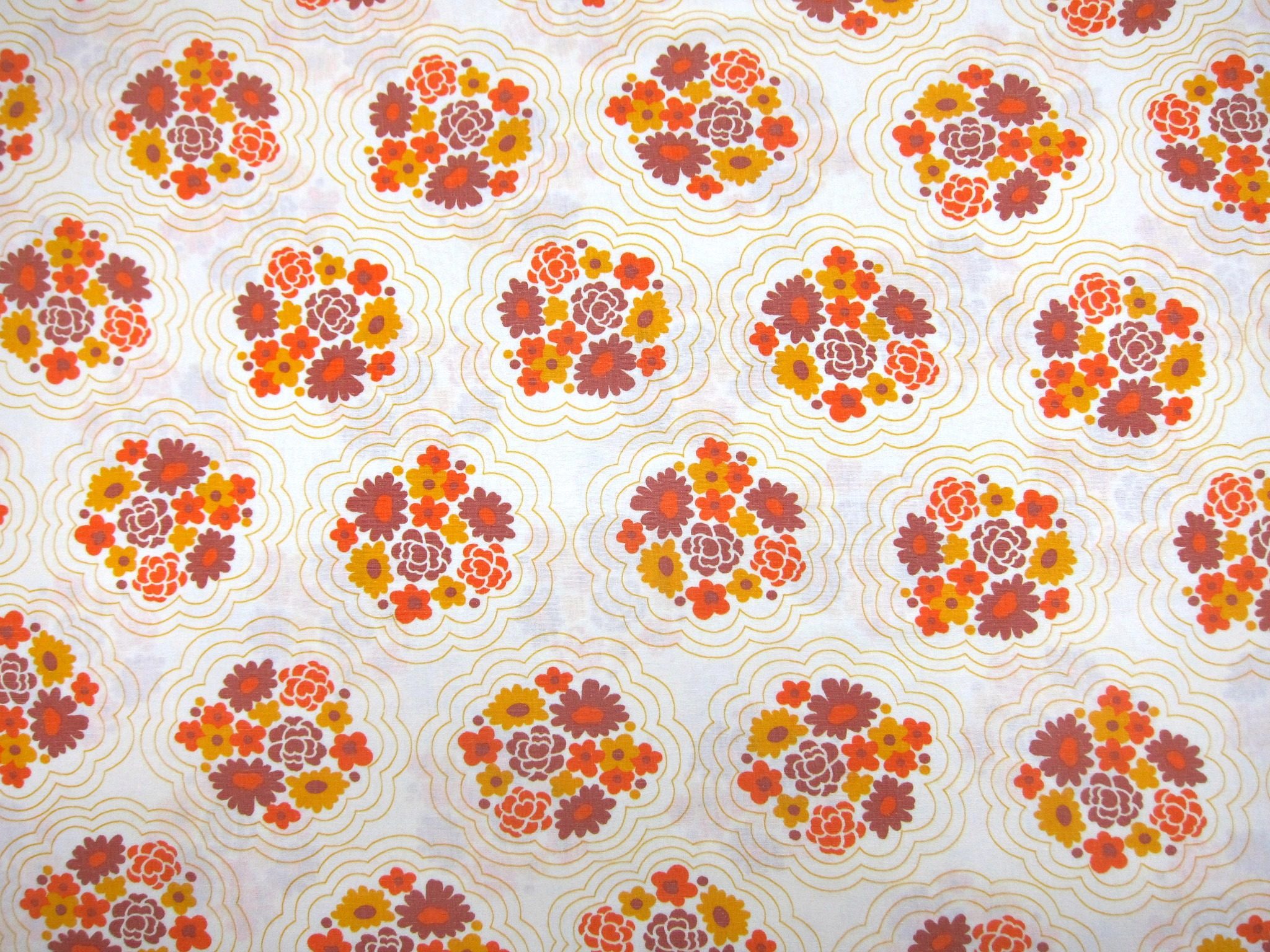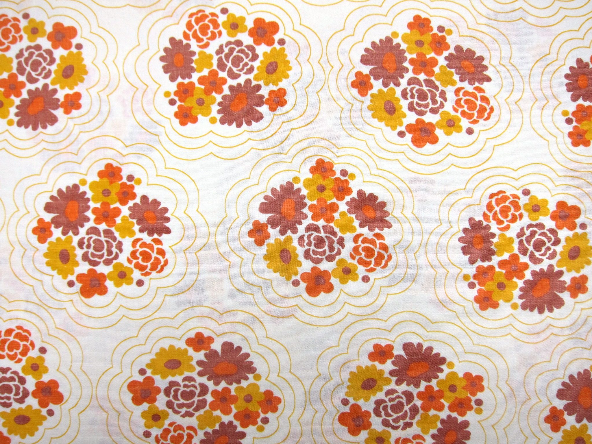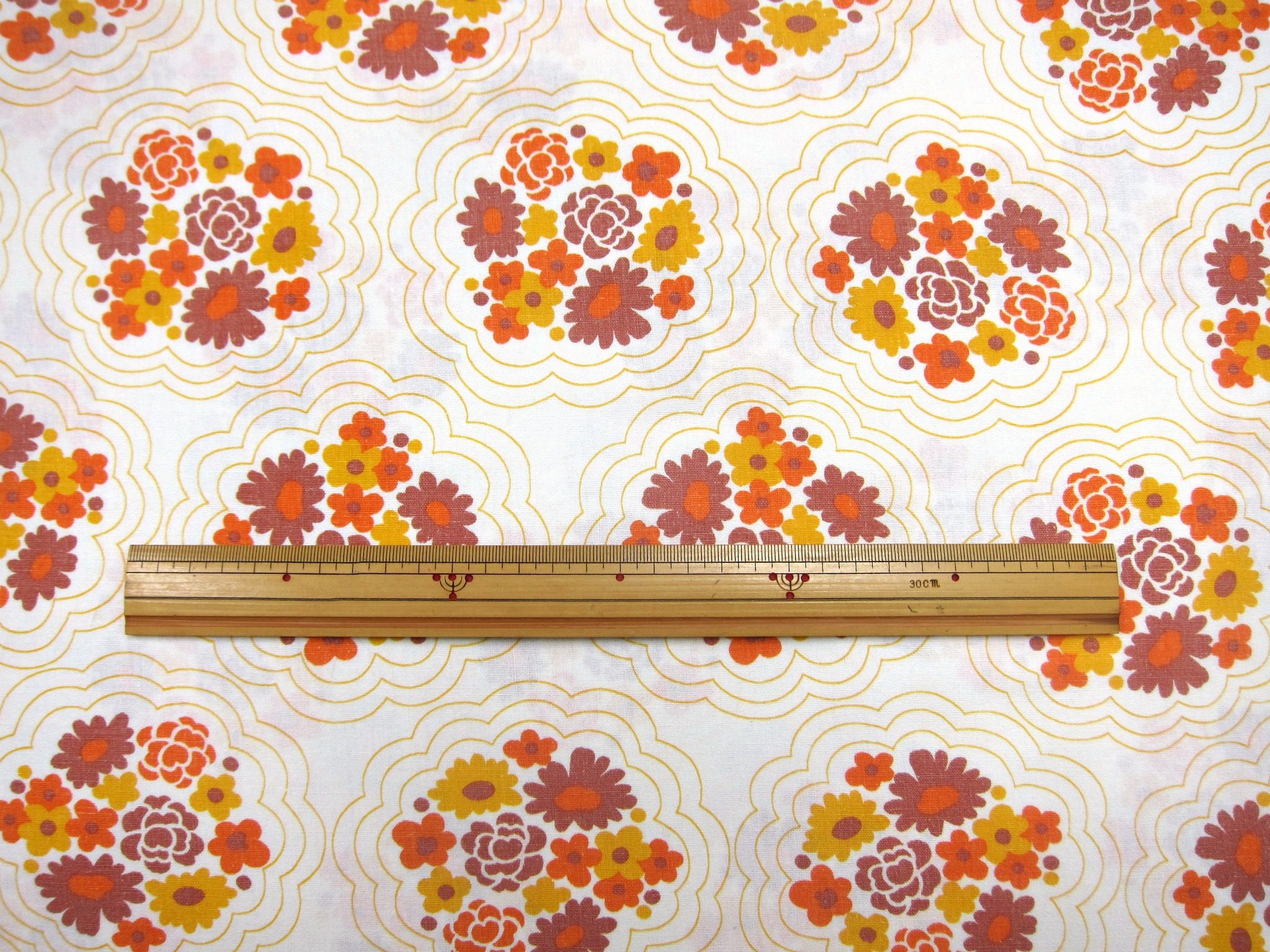 コンテンツにスキップ温かみのある色合いのさまざまなお花がブーケのようにあしらわれた70年代コットン製ファブリック。