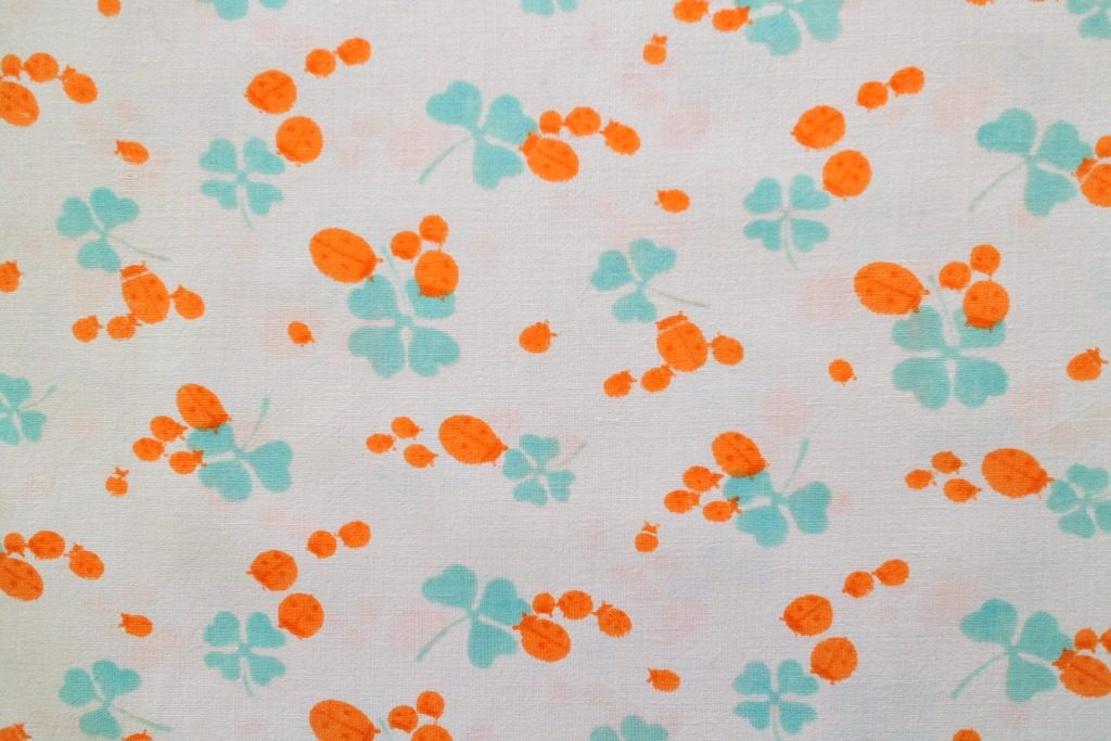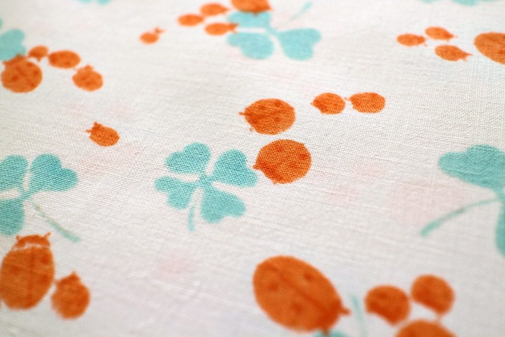 てんとう虫とクローバー柄ヴィンテージコットンファブリック 幅90cm
