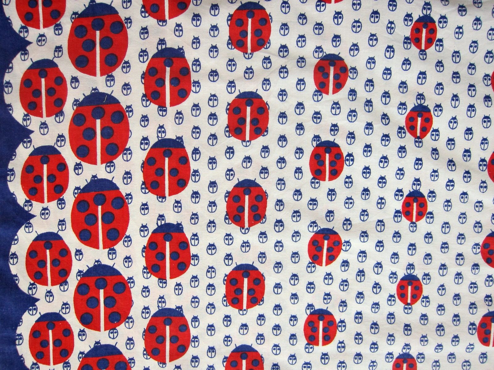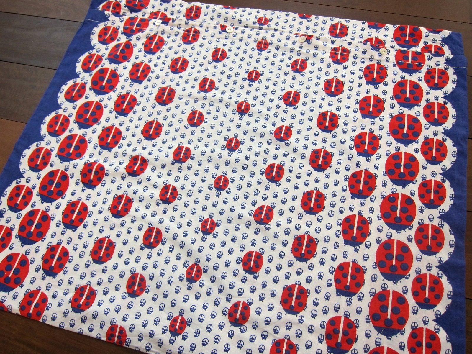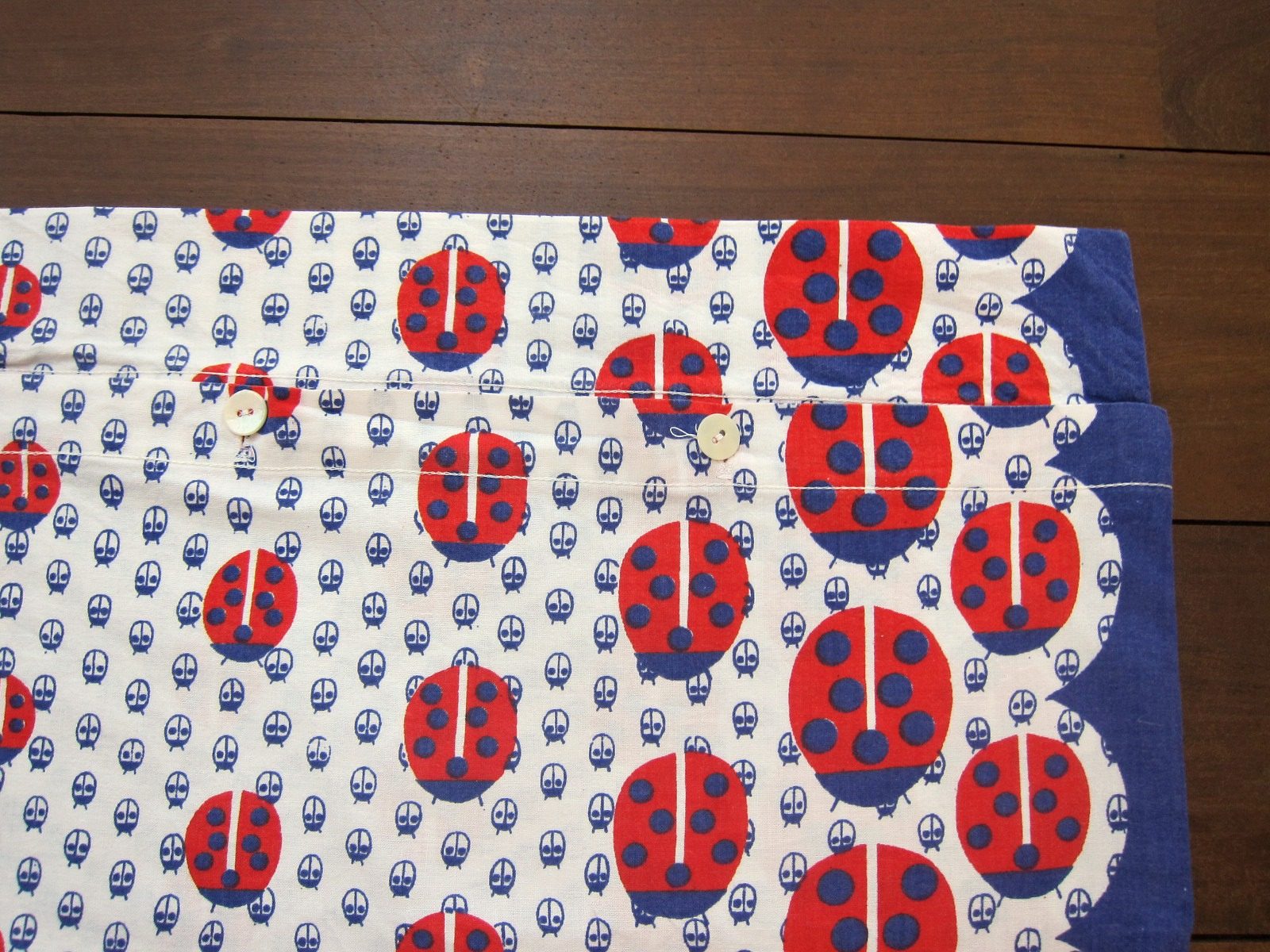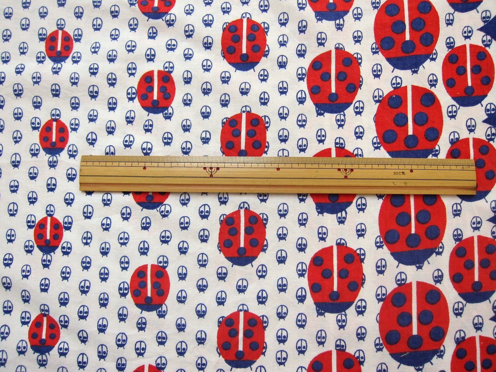 DDR時代の子ども柄ヴィンテージピローケース。 大小様々なサイズのてんとう虫のイラストが生地いっぱいに描かれています。