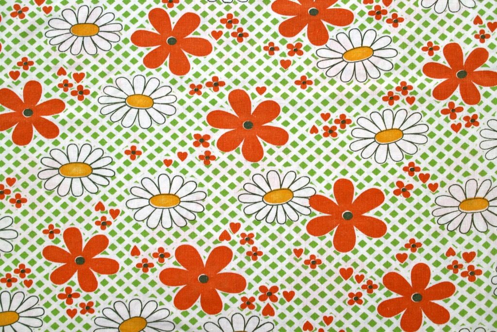 コンテンツにスキップささっと手描き風のデイジーとほっこりオレンジのお花モチーフが懐かしさを誘う暖色系ヴィンテージファブリック。