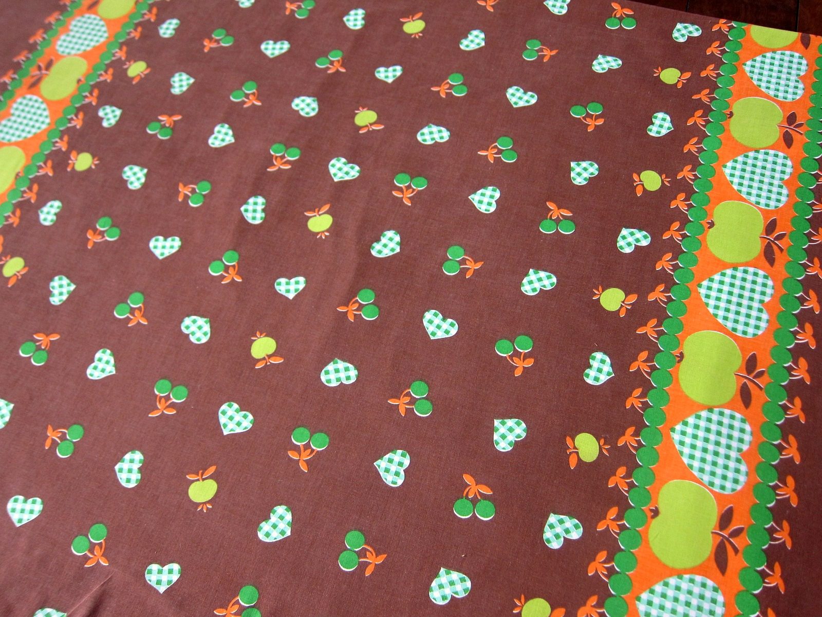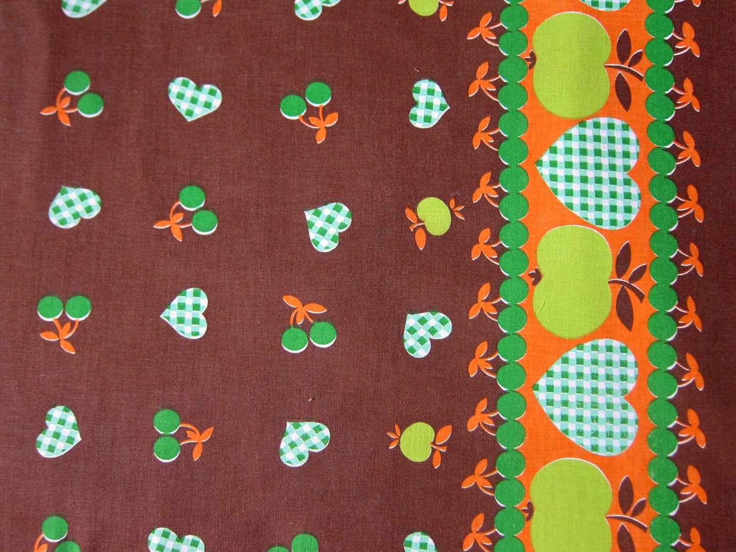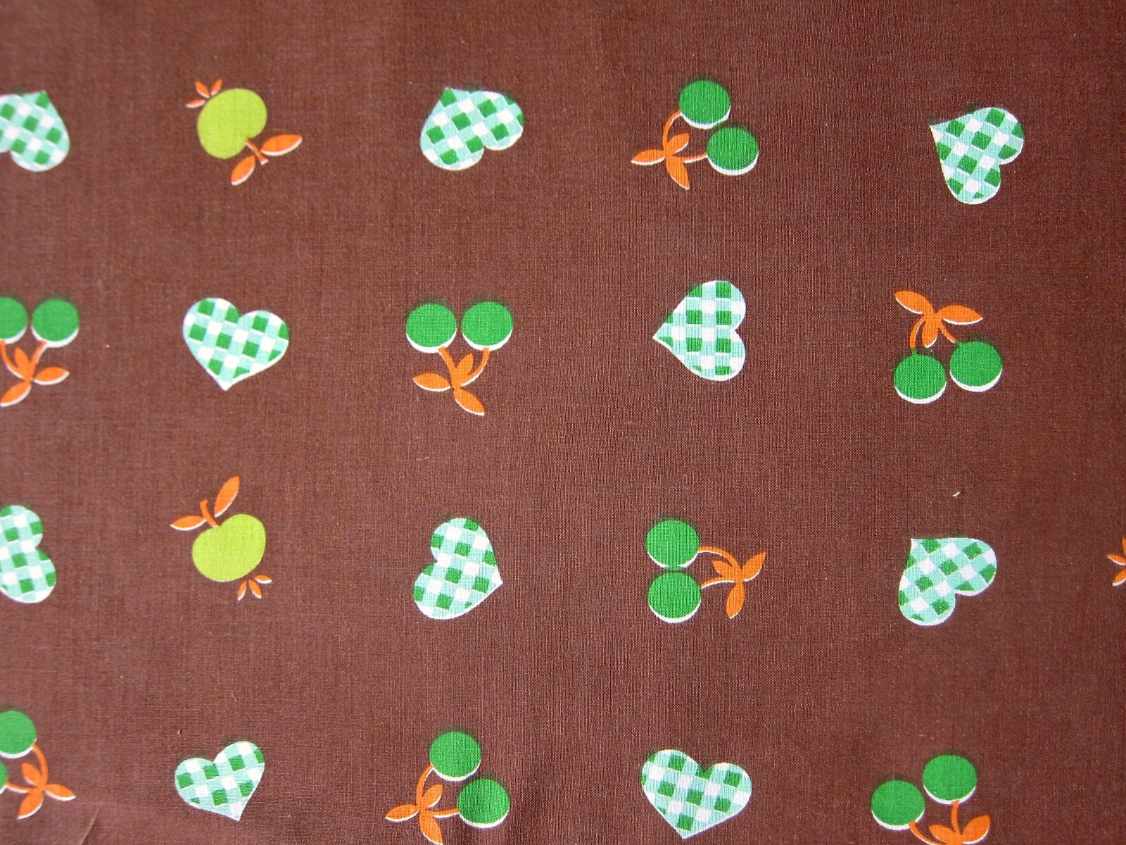 コンテンツにスキップレトロなりんごとさくらんぼ柄にハートが加わった可愛い生地。