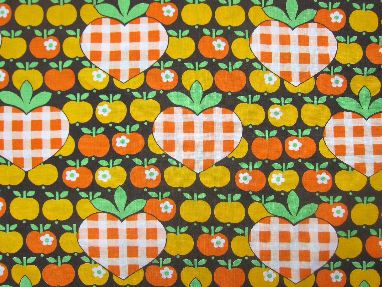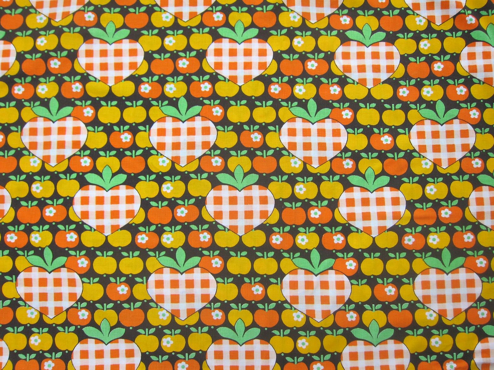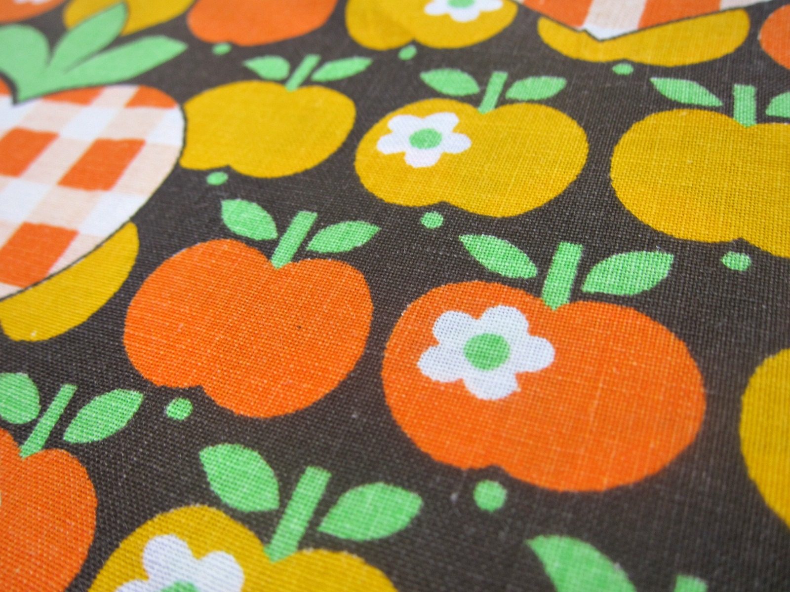 70年代のレトロなリンゴモチーフのヴィンテージファブリックです。