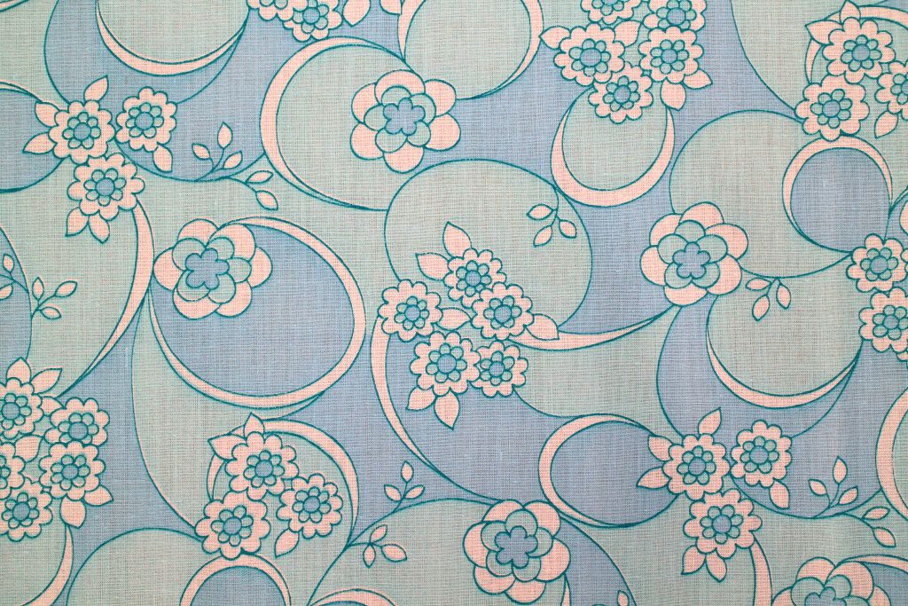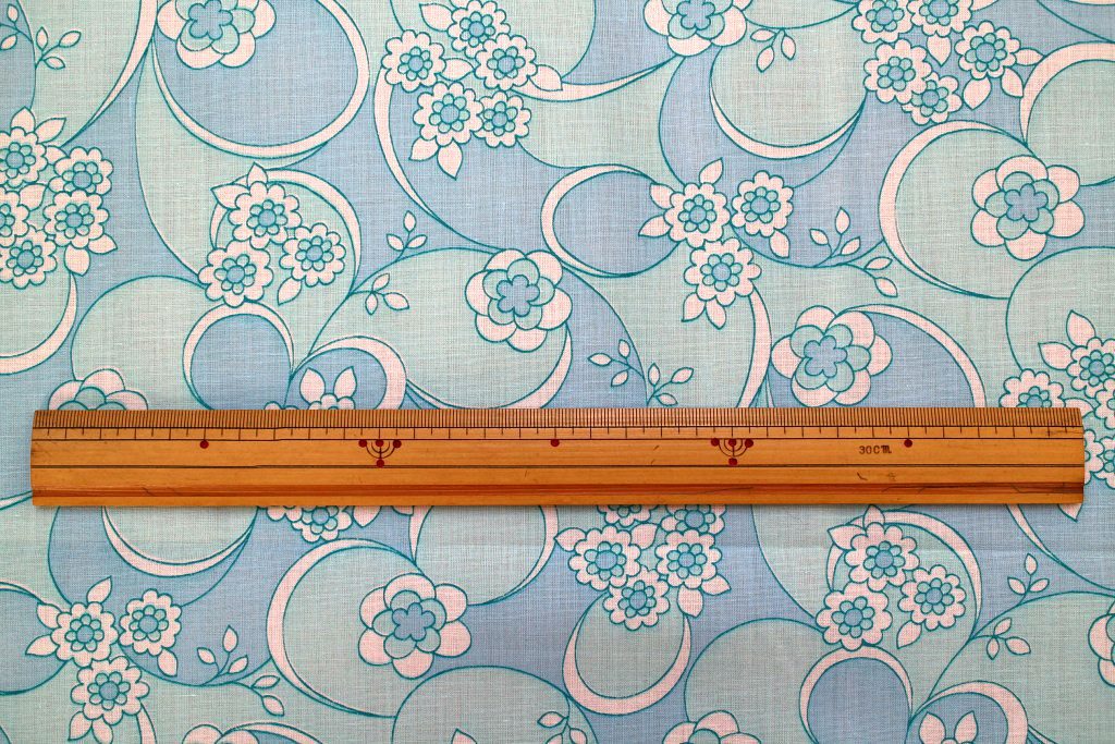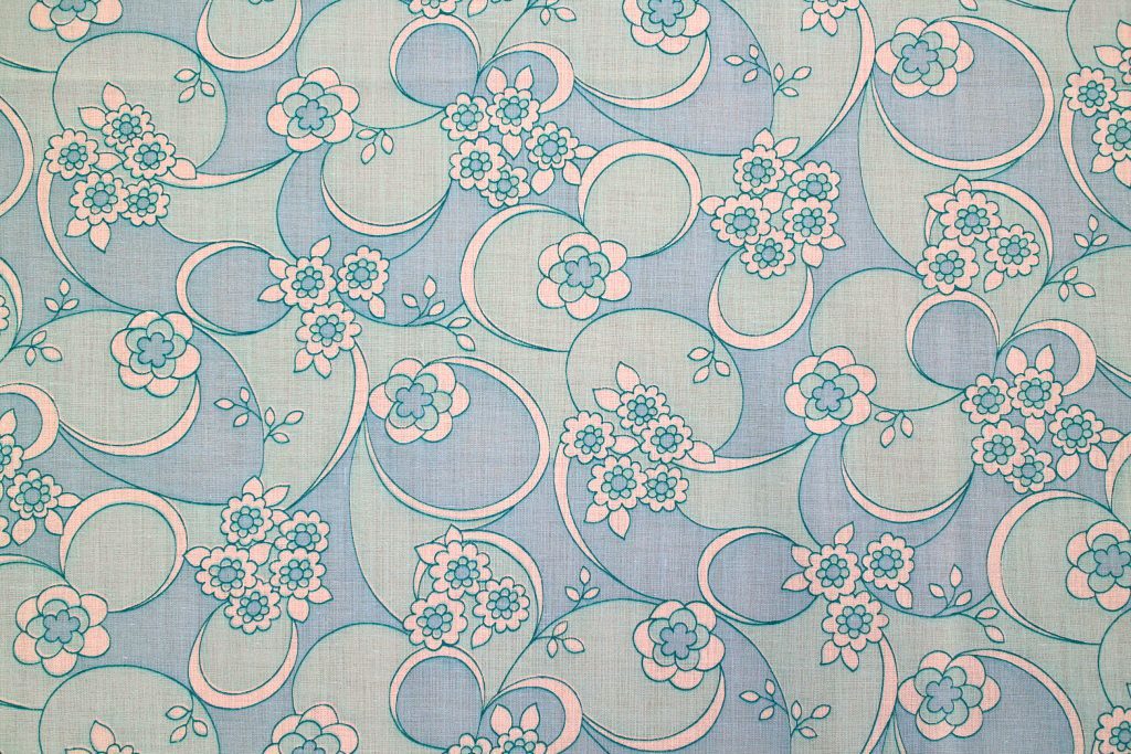 淡い水色とホワイトカラーの花模様が踊るひんやり色レトロファブリック。
