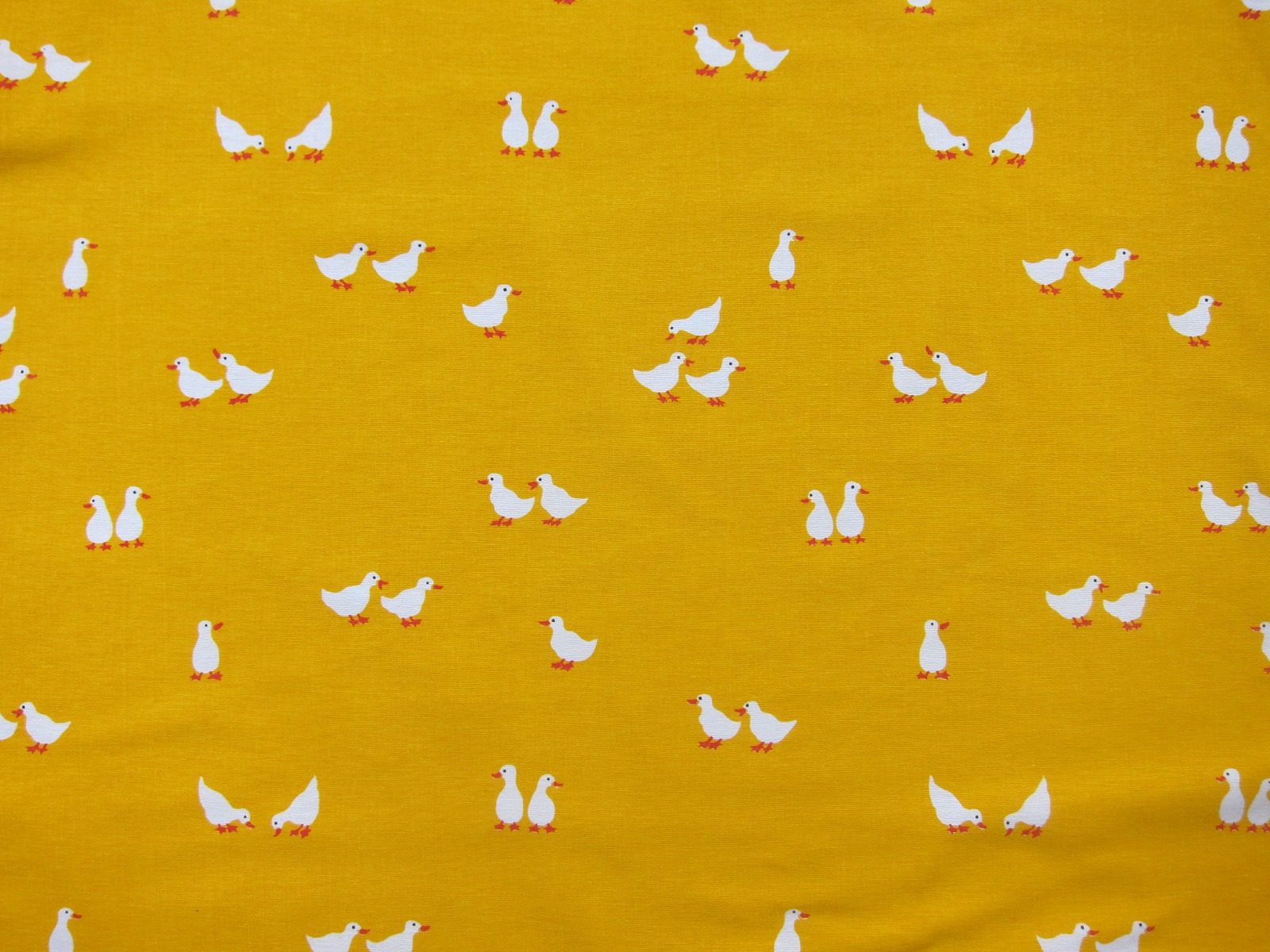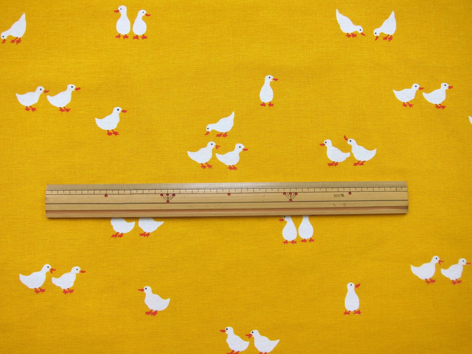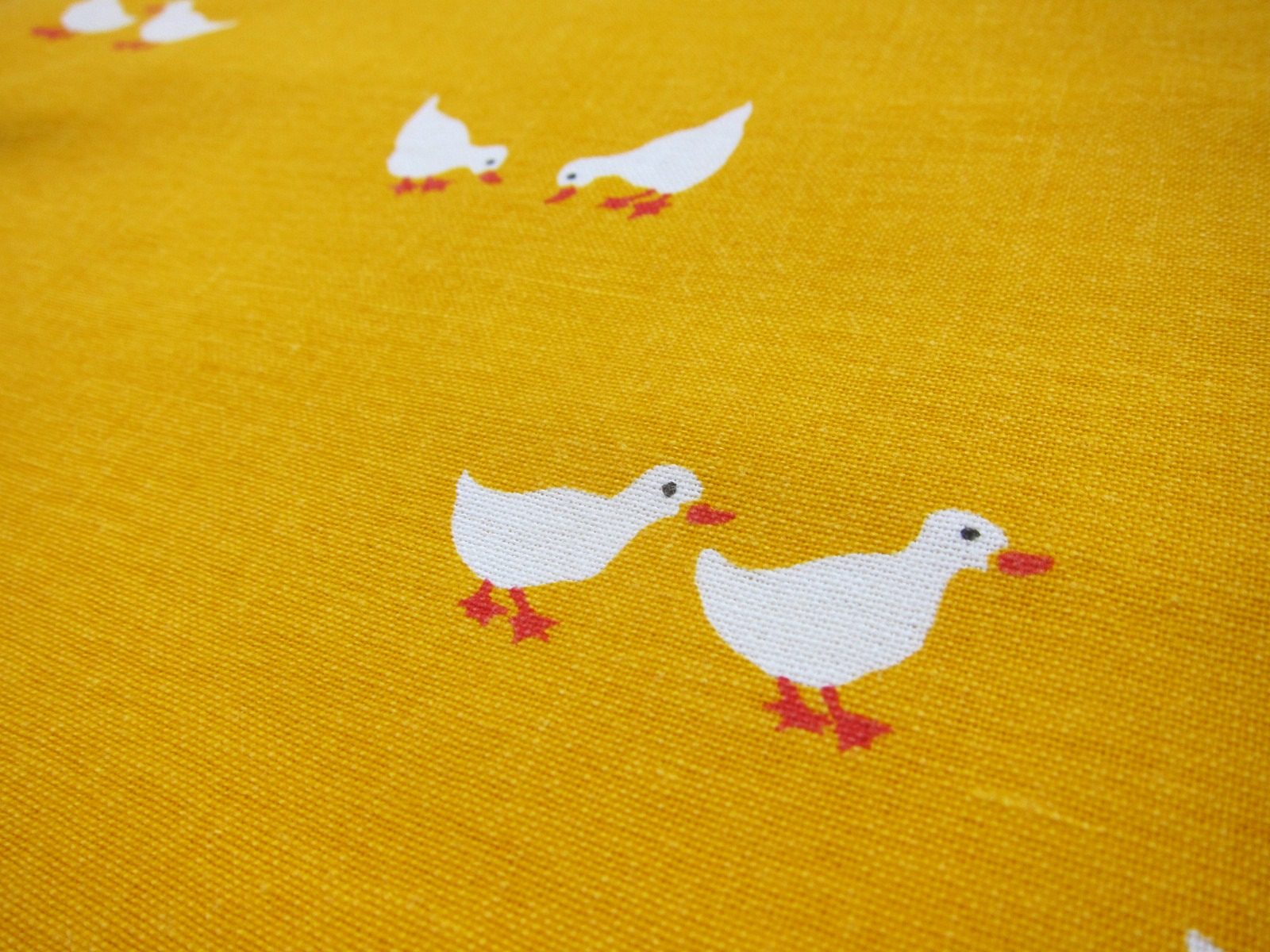 コンテンツにスキップ大きく開かれたフィールドいっぱいにアヒルたちがお散歩している様子が可愛らしいレトロ生地。