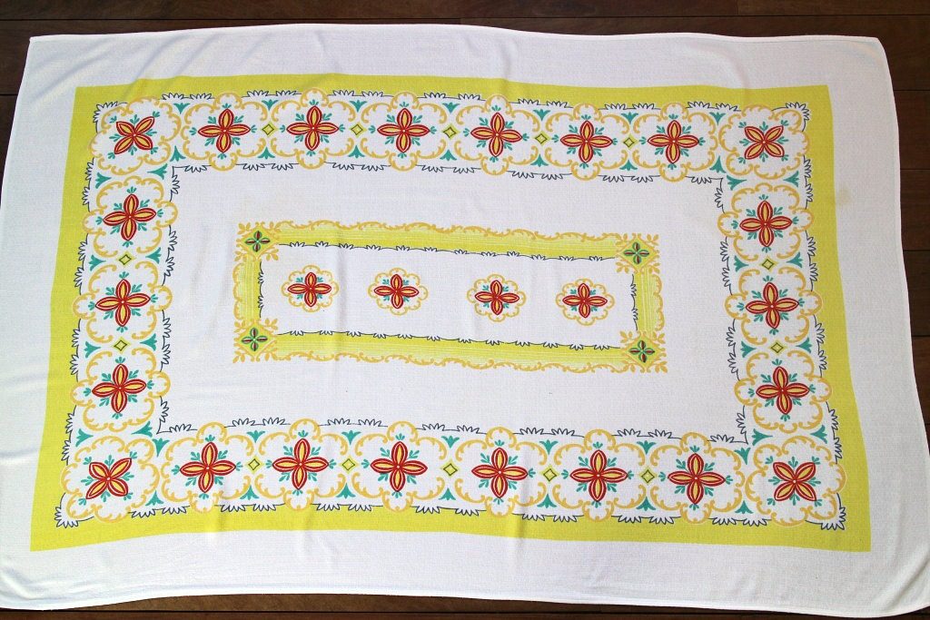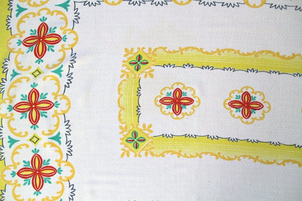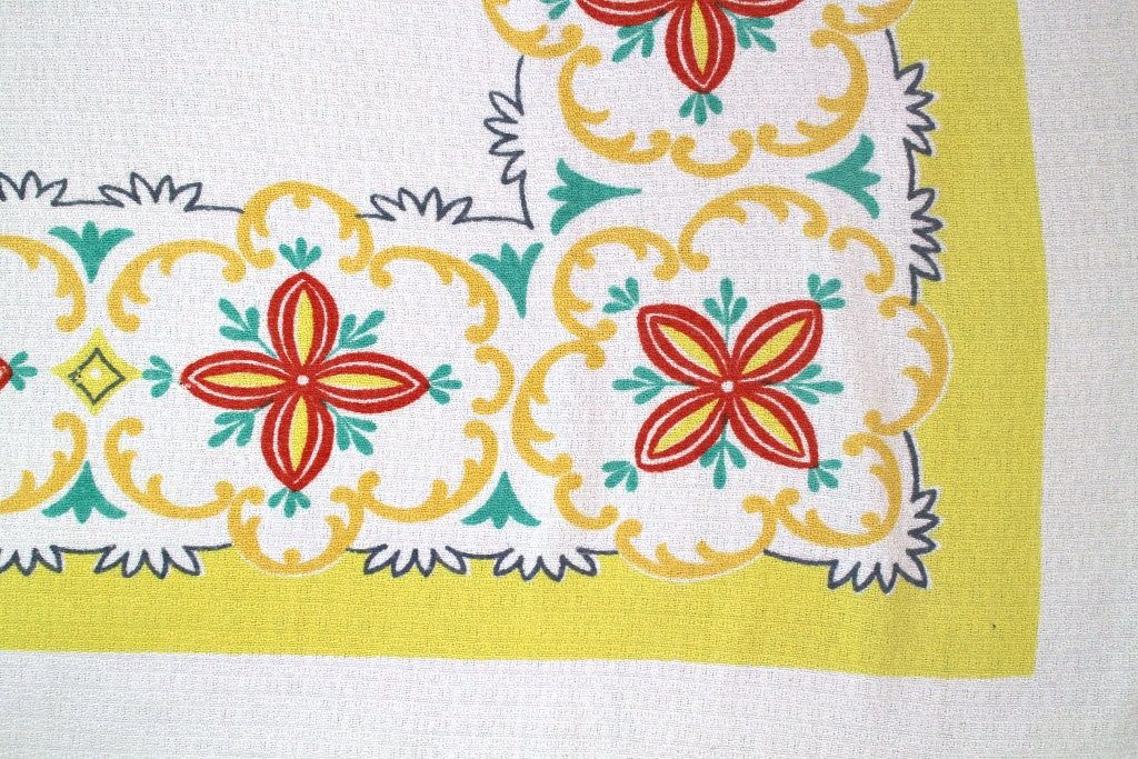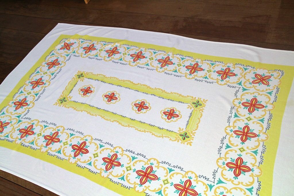 コンテンツにスキップイエロー系フォークロア模様のヴィンテージテーブルクロス