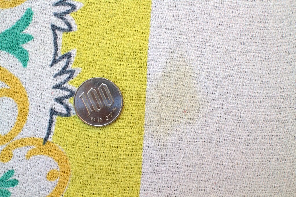 黄色をメインにした明るい色使いが特徴的で、恐らくレーヨン製と思われるしなやかな手触り。