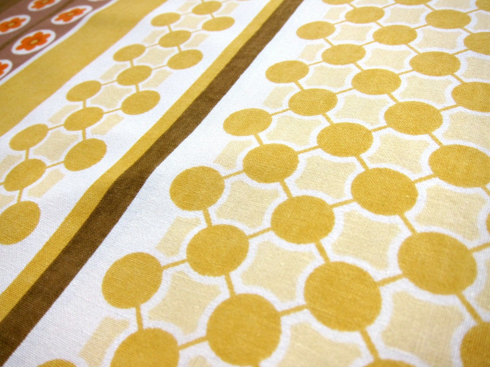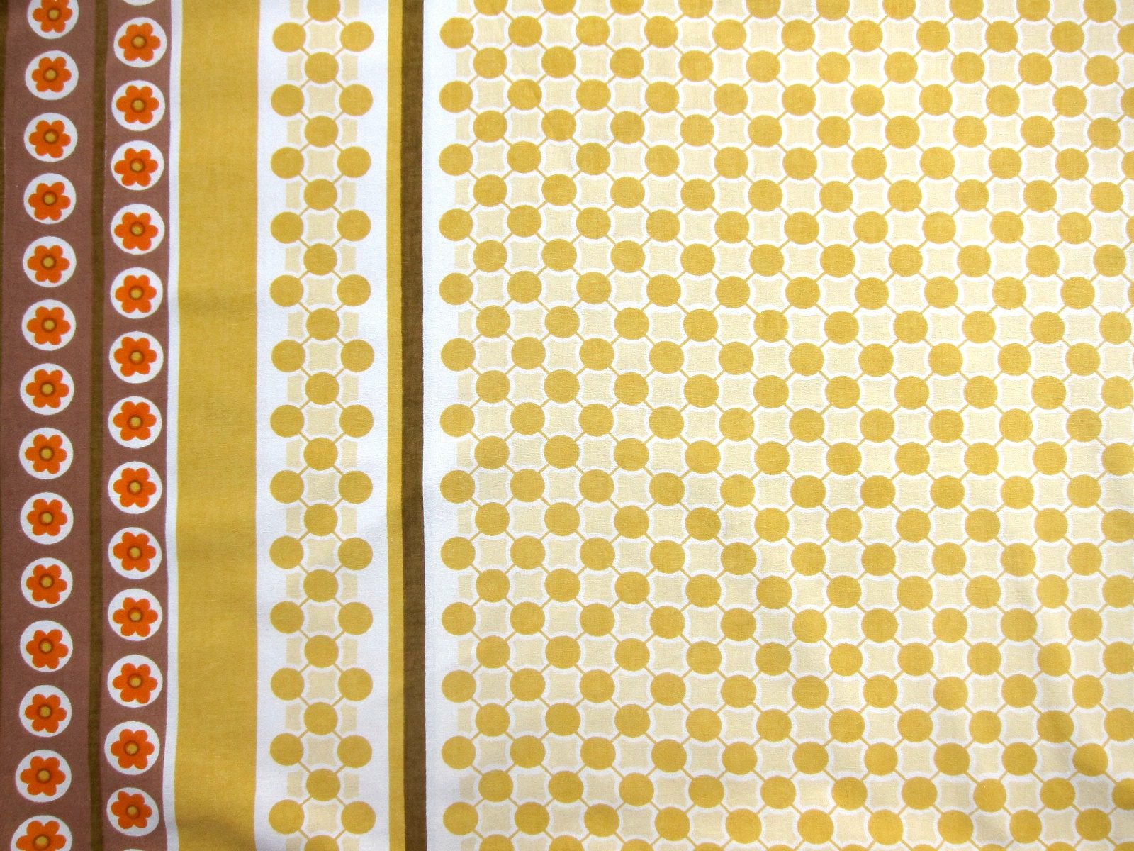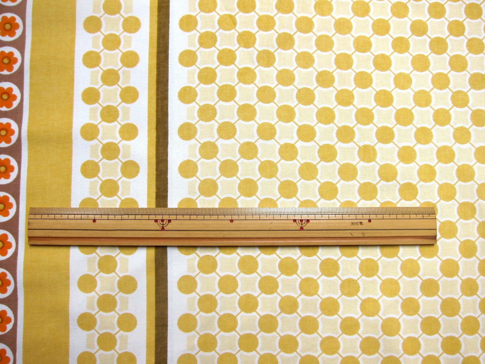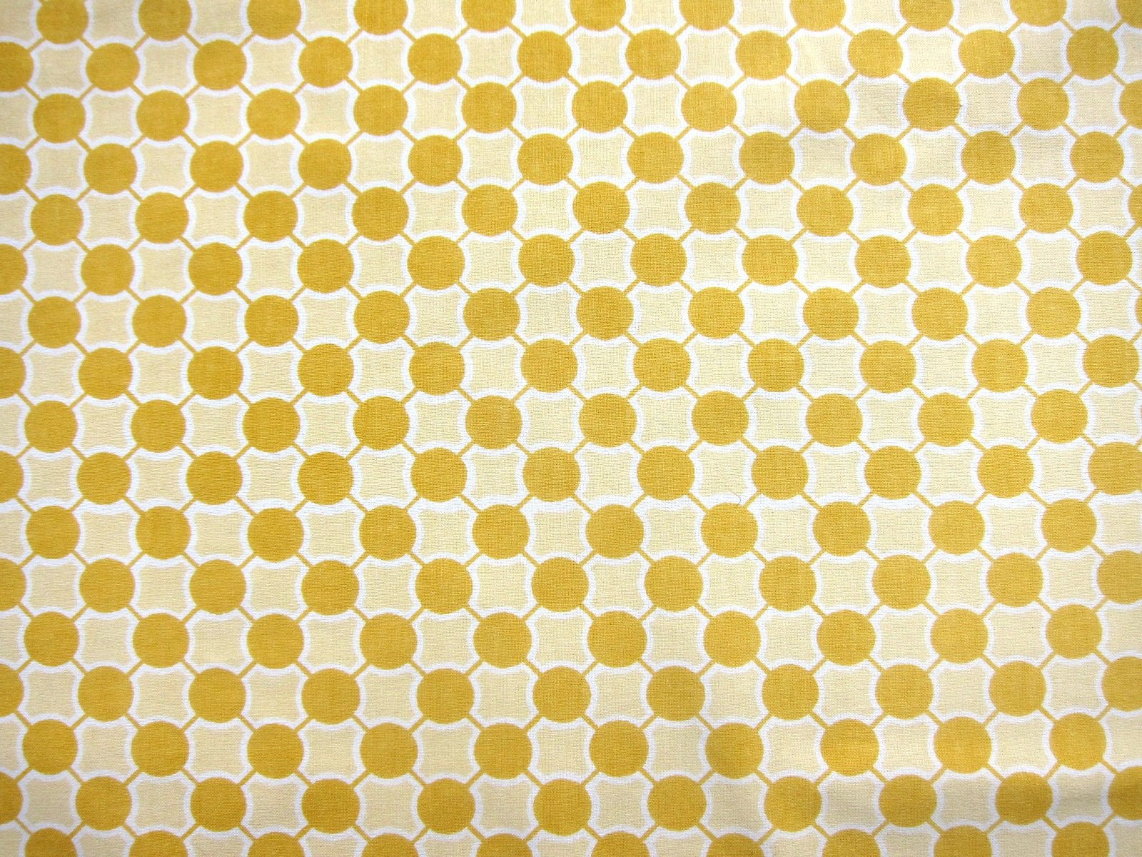 コンテンツにスキップ直線で繋がれた落ち着いたトーンの黄色いドットが、一面に広がったレトロなデザインのファブリック。
