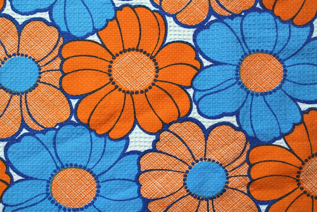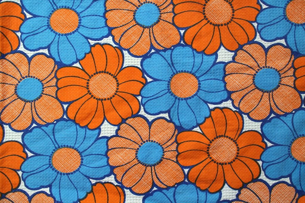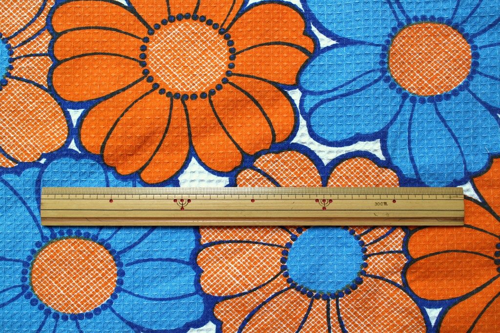 コンテンツにスキップイスラエルで見つけた、青とオレンジのビビッドな組み合わせが楽しい70年代フラワー柄ヴィンテージファブリック。
