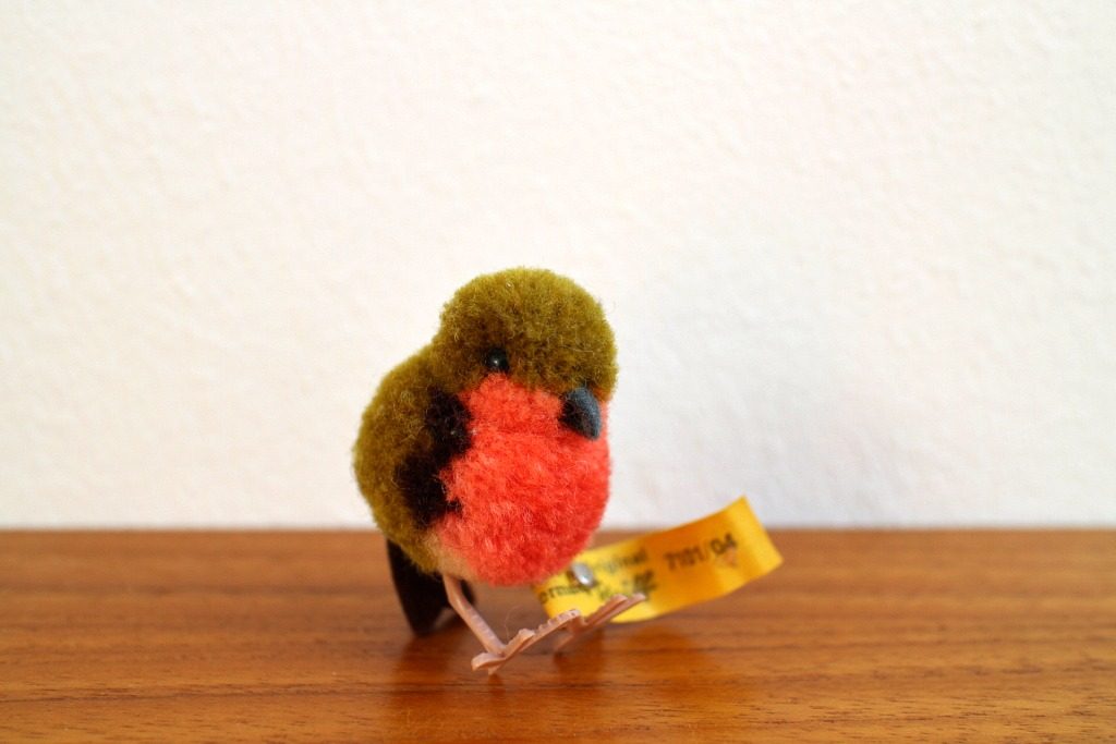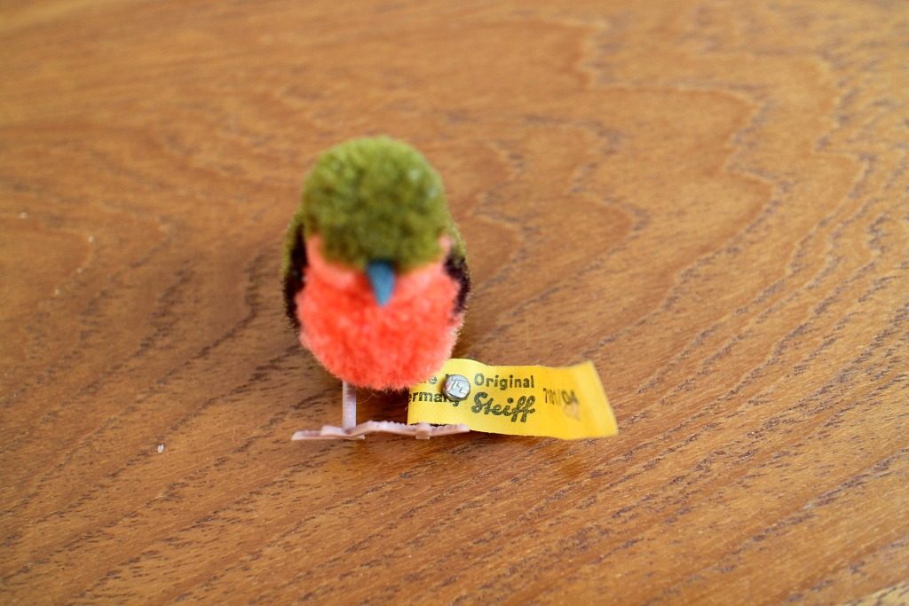 テディベアを世界で初めてこの世に送り出した、1880年創業ドイツの老舗ぬいぐるみメーカーSteiff(シュタイフ) のウール製小さな小鳥のぬいぐるみ(目と足はプラスティック製)。