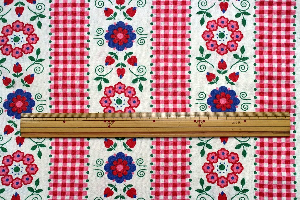 3. タータンチェックと花モチーフ(ピンク系) サイズ: 32cm x 40cm