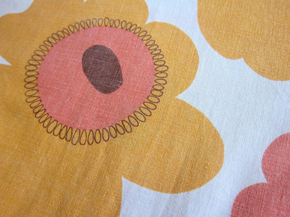 まるでマリメッコのような大きなお花柄70年代ヴィンテージファブリック。