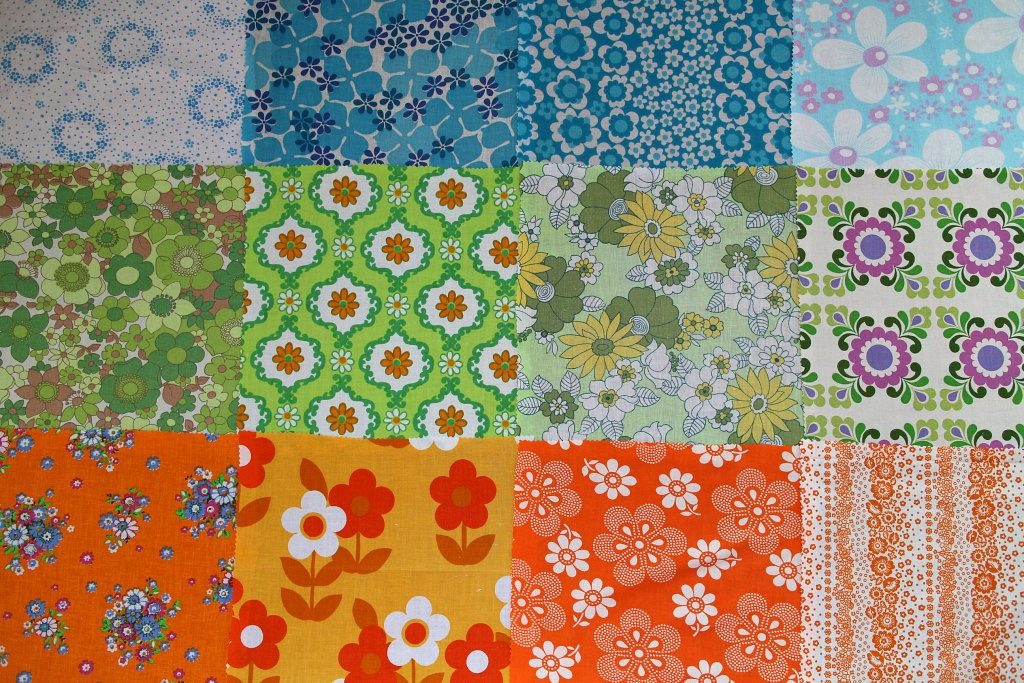ブルー・グリーン&オレンジ系カラーを集めたレトロな花柄ヴィンテージカットクロスコレクション。 12枚それぞれ違った印象のフラワーモチーフのセットです。 パッチワークや小物作りに使いやすい30センチ角。 ちょっとずつ試してみたいという方にもオススメ。12枚入り。