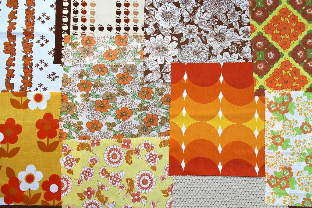 オレンジ〜ブラウン系カラーでまとめたぬくもりいっぱいのレトロカットクロス10枚組。