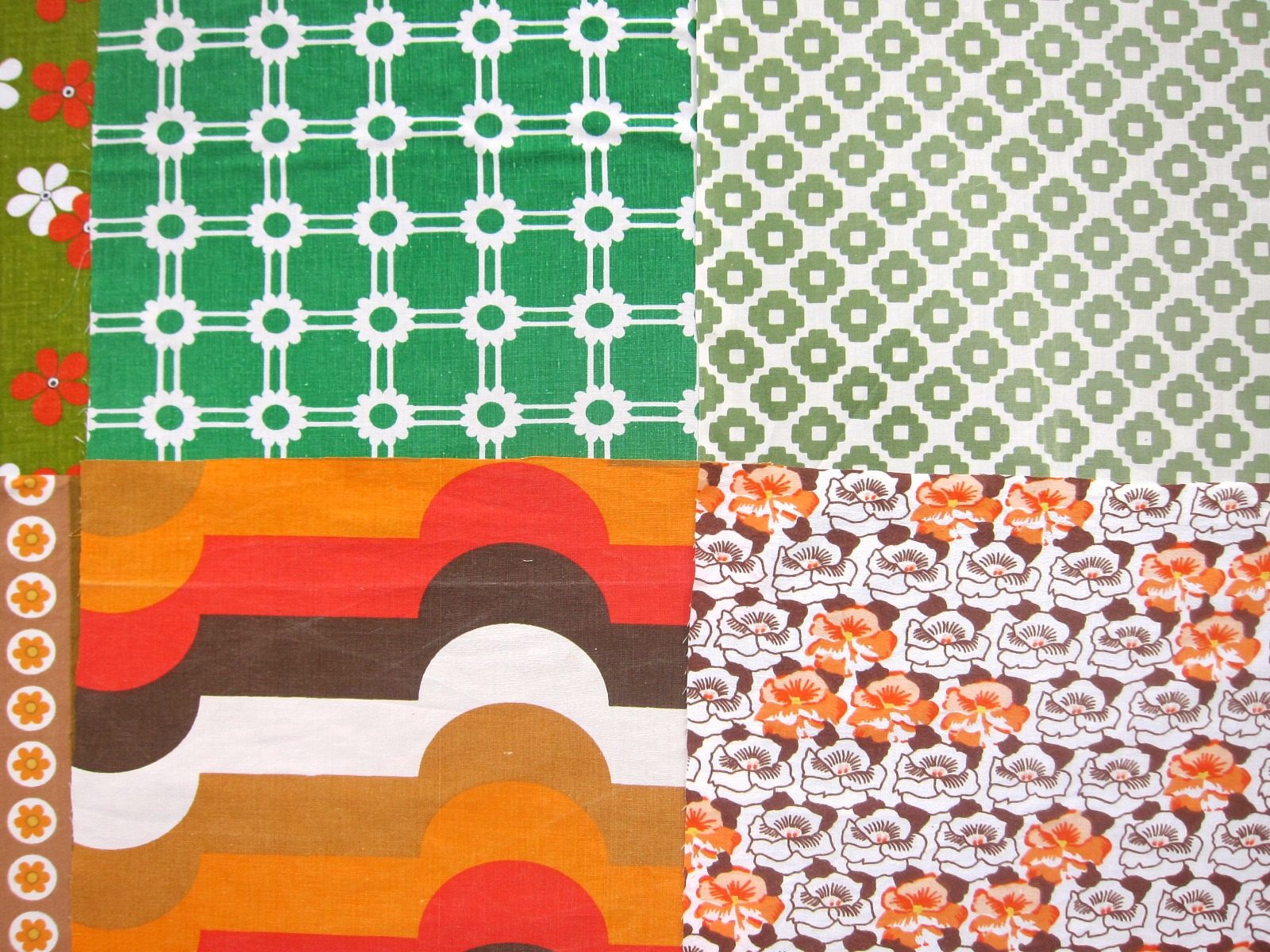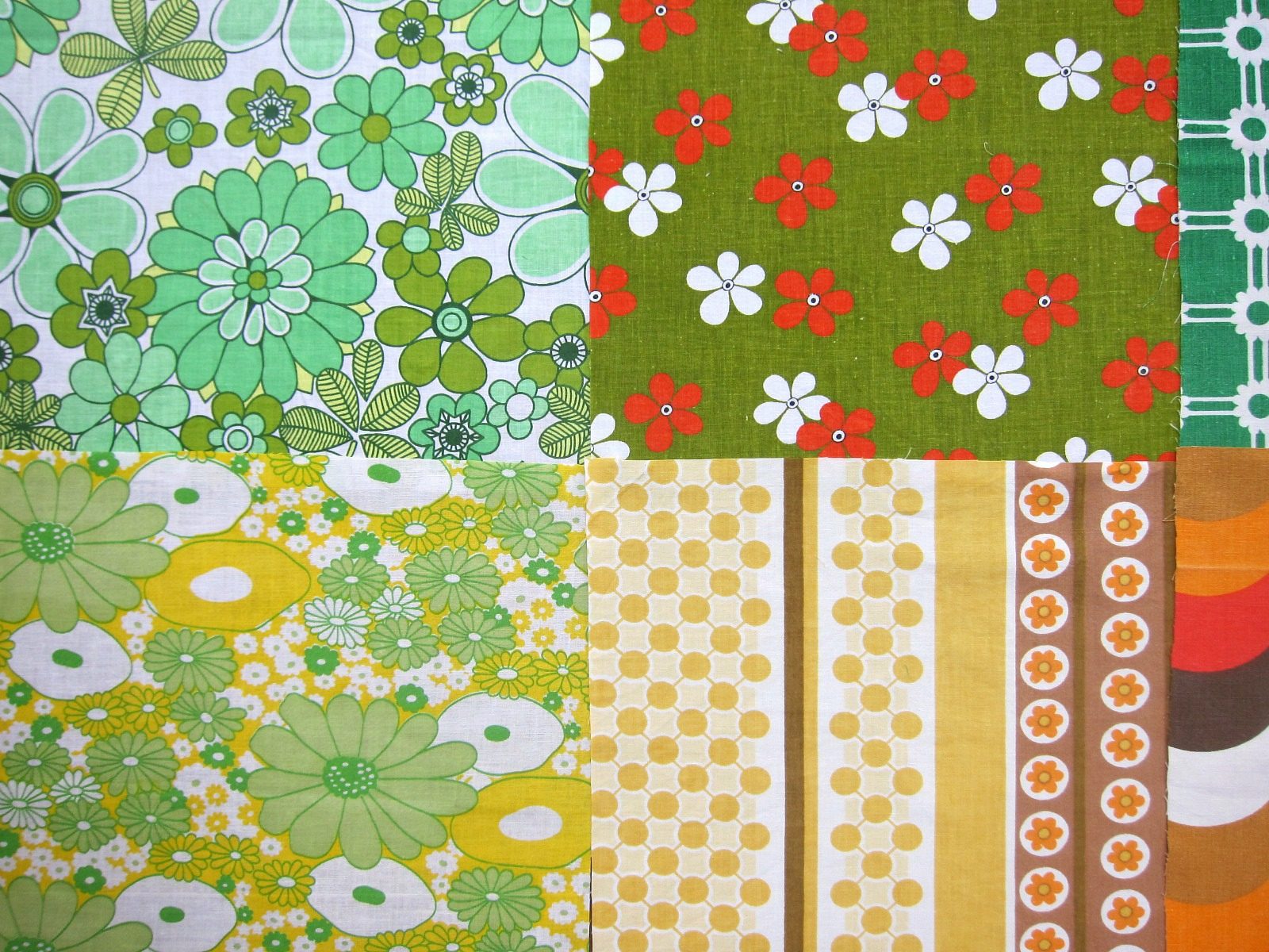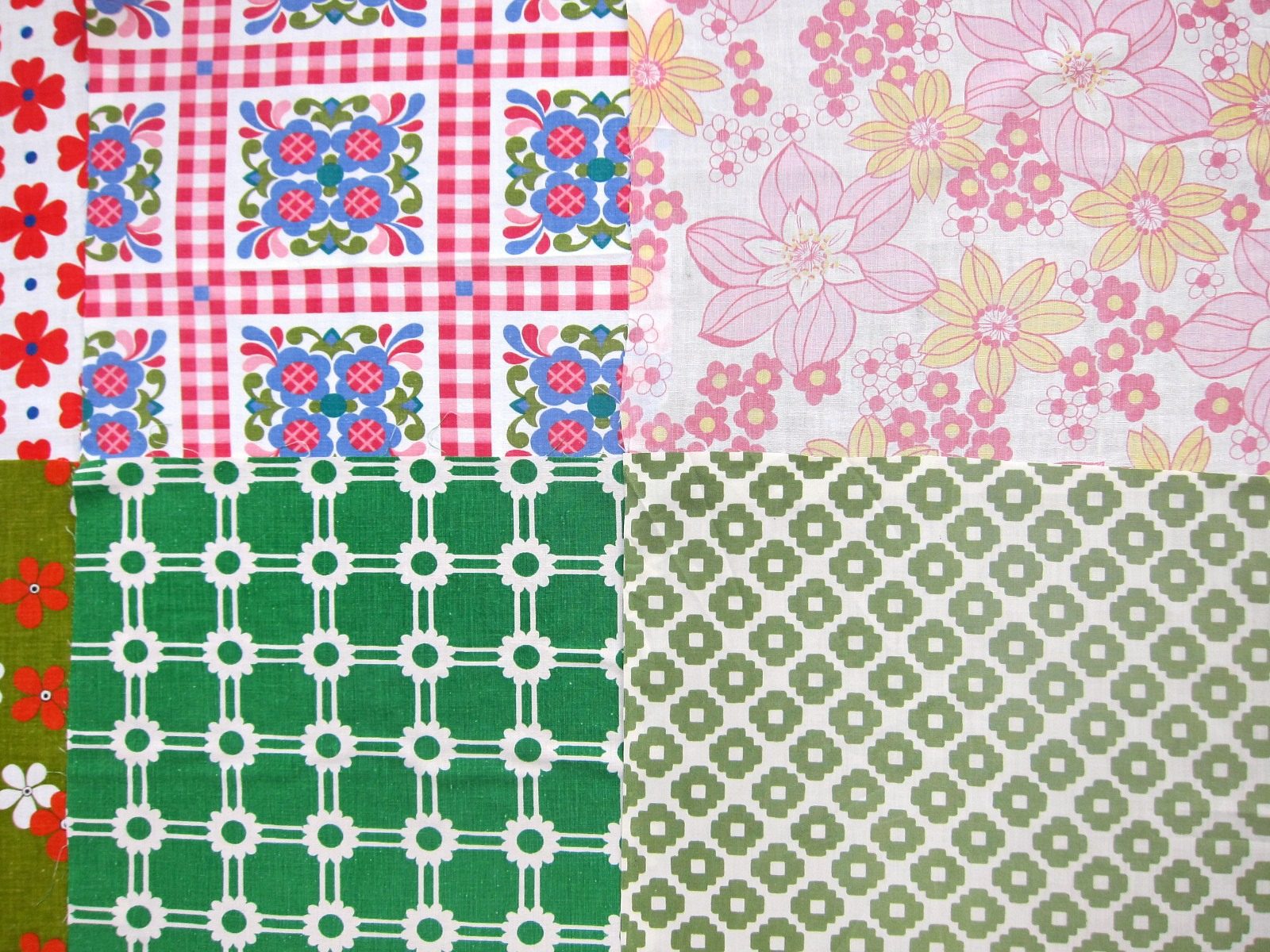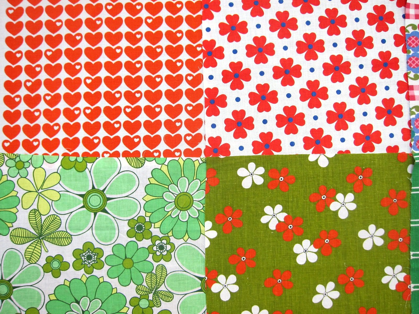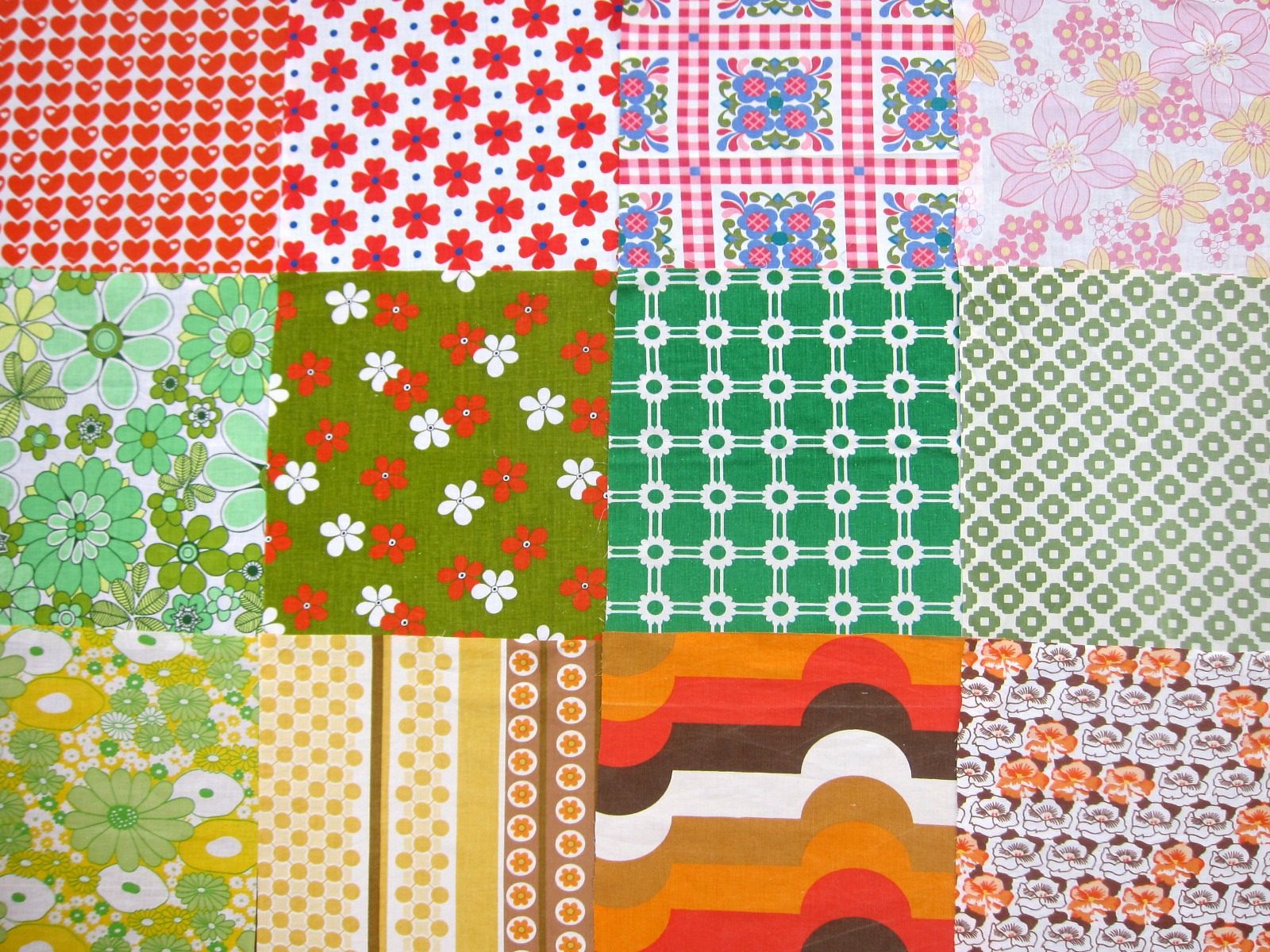 ポップなハート柄にキュートなお花、幾何学模様いろいろなどレトロの魅力がたっぷり詰まったヴィンテージ生地はぎれ12枚セット。