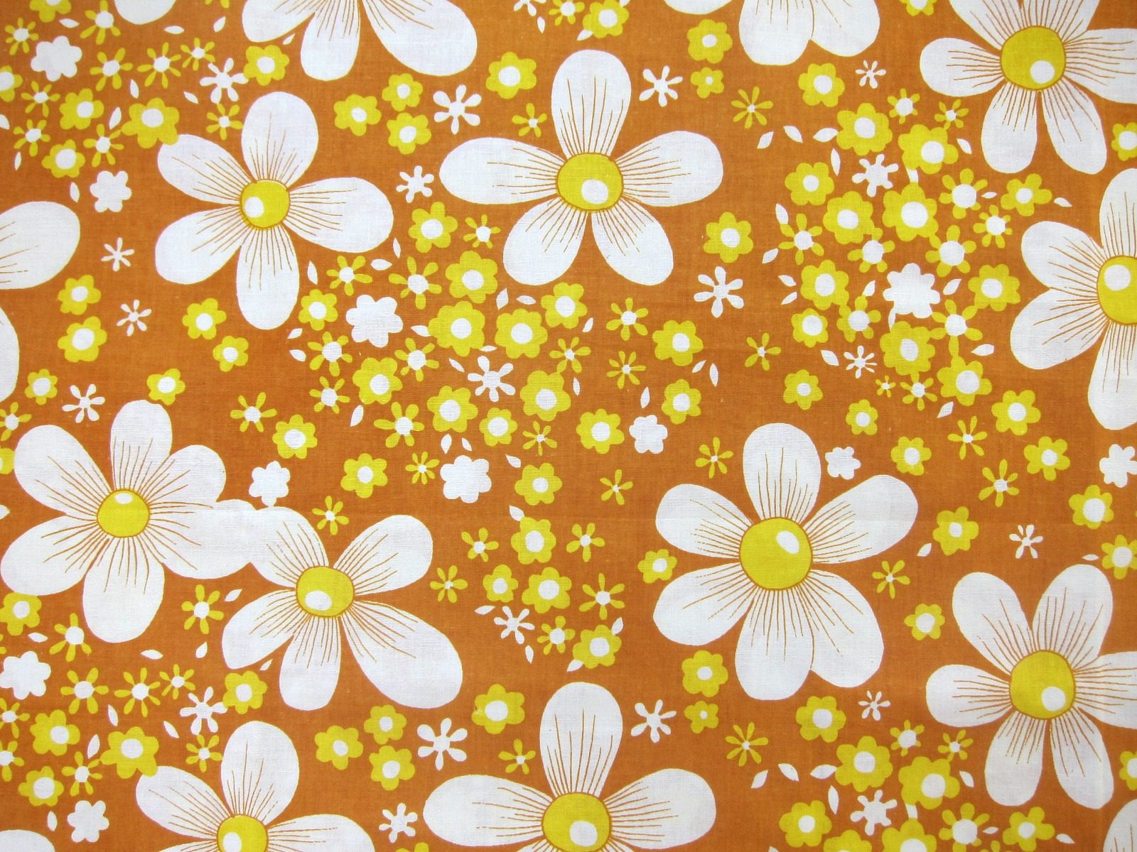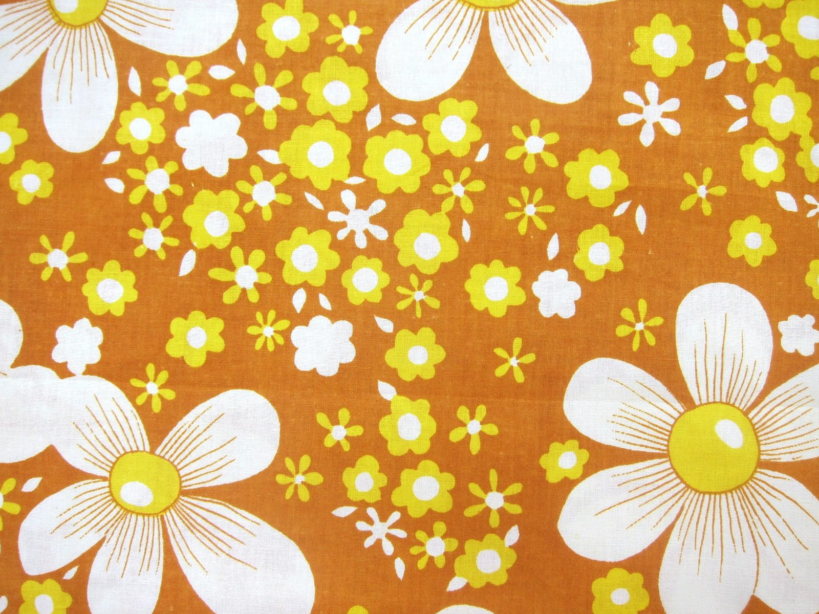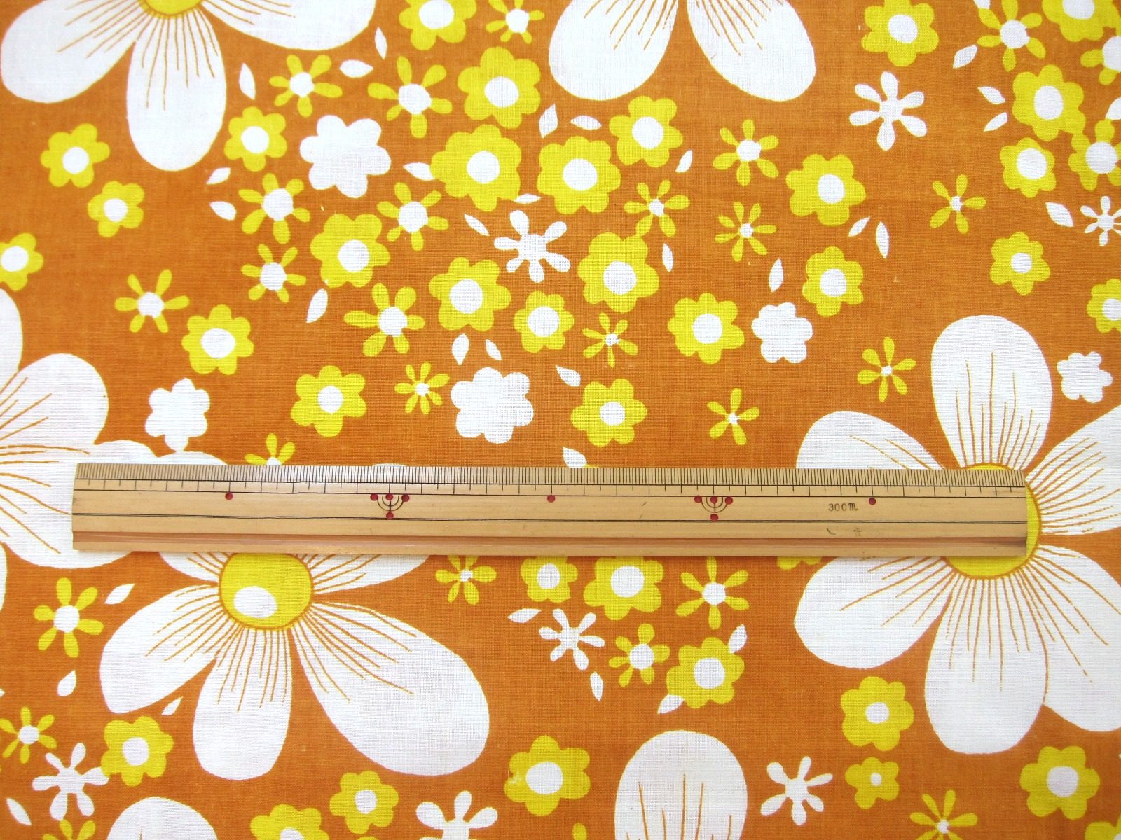 明るめの茶系カラーに、浮き出るように描かれた立体的なレトロ花模様が特徴的なビンテージファブリック。