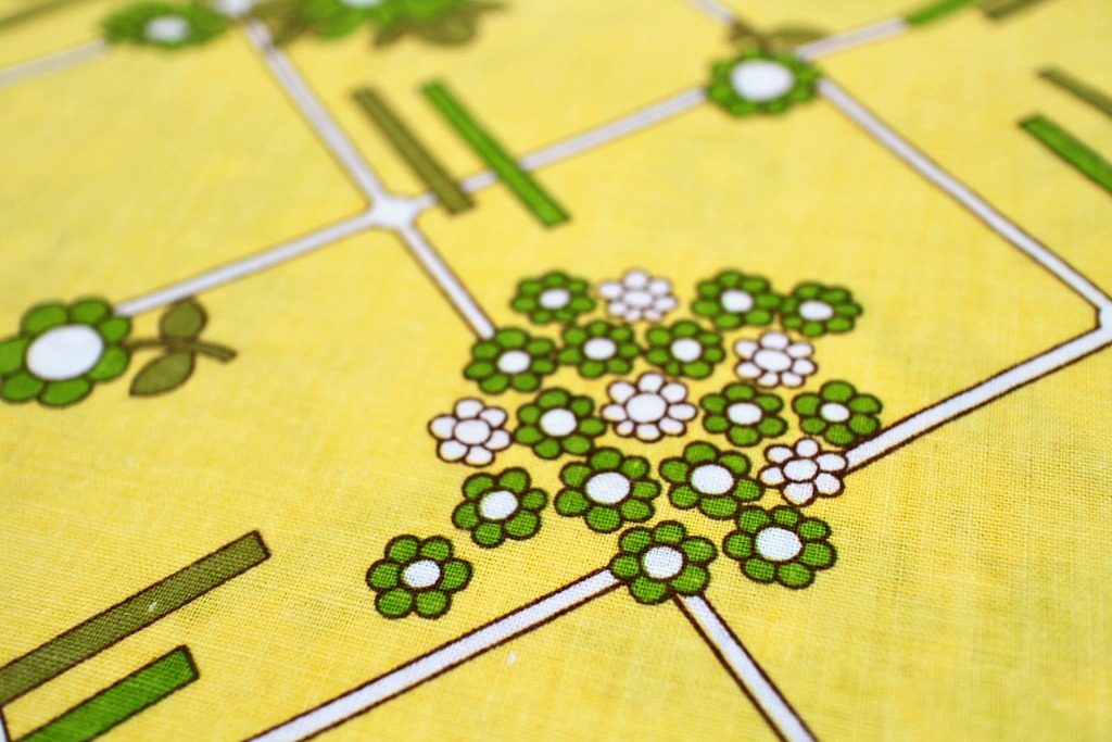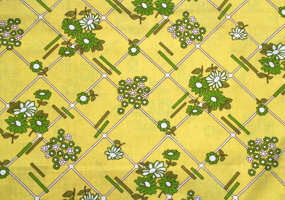コンテンツにスキップトーンを抑えた黄色を背景にした渋めカラーのお花模様。