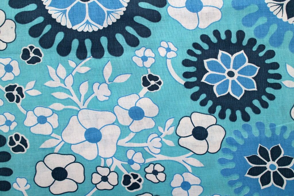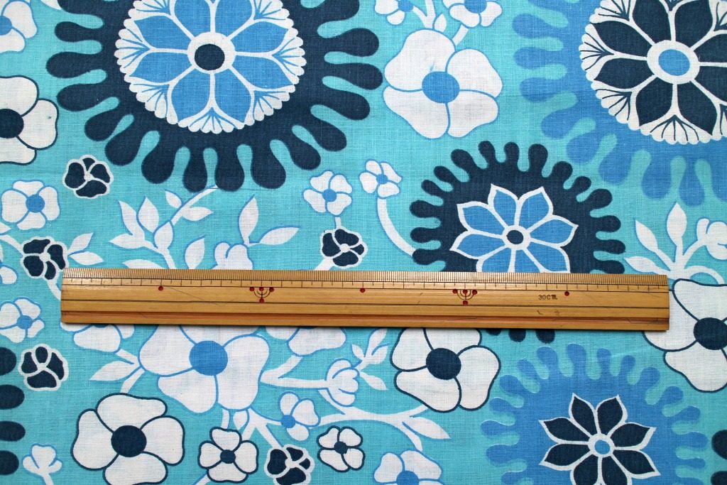 クールな水色フローラル**デッドストック**ヴィンテージファブリック 幅135cm