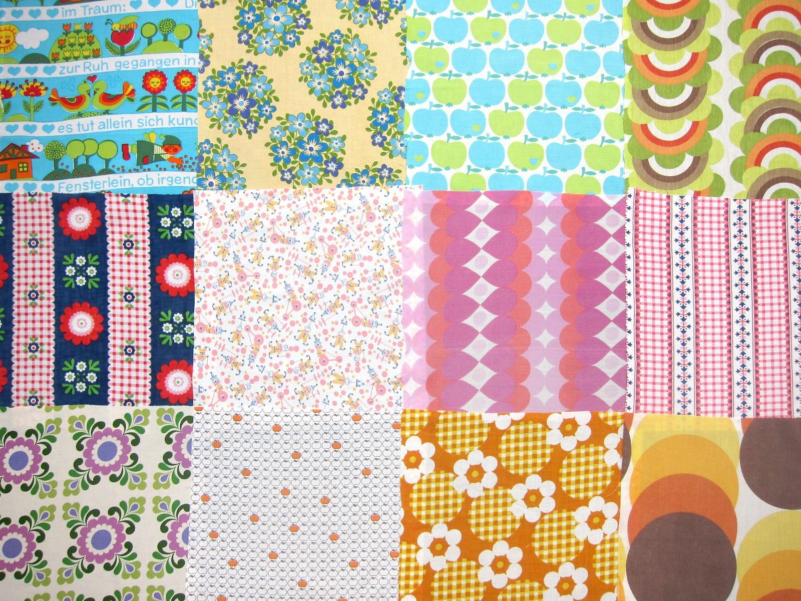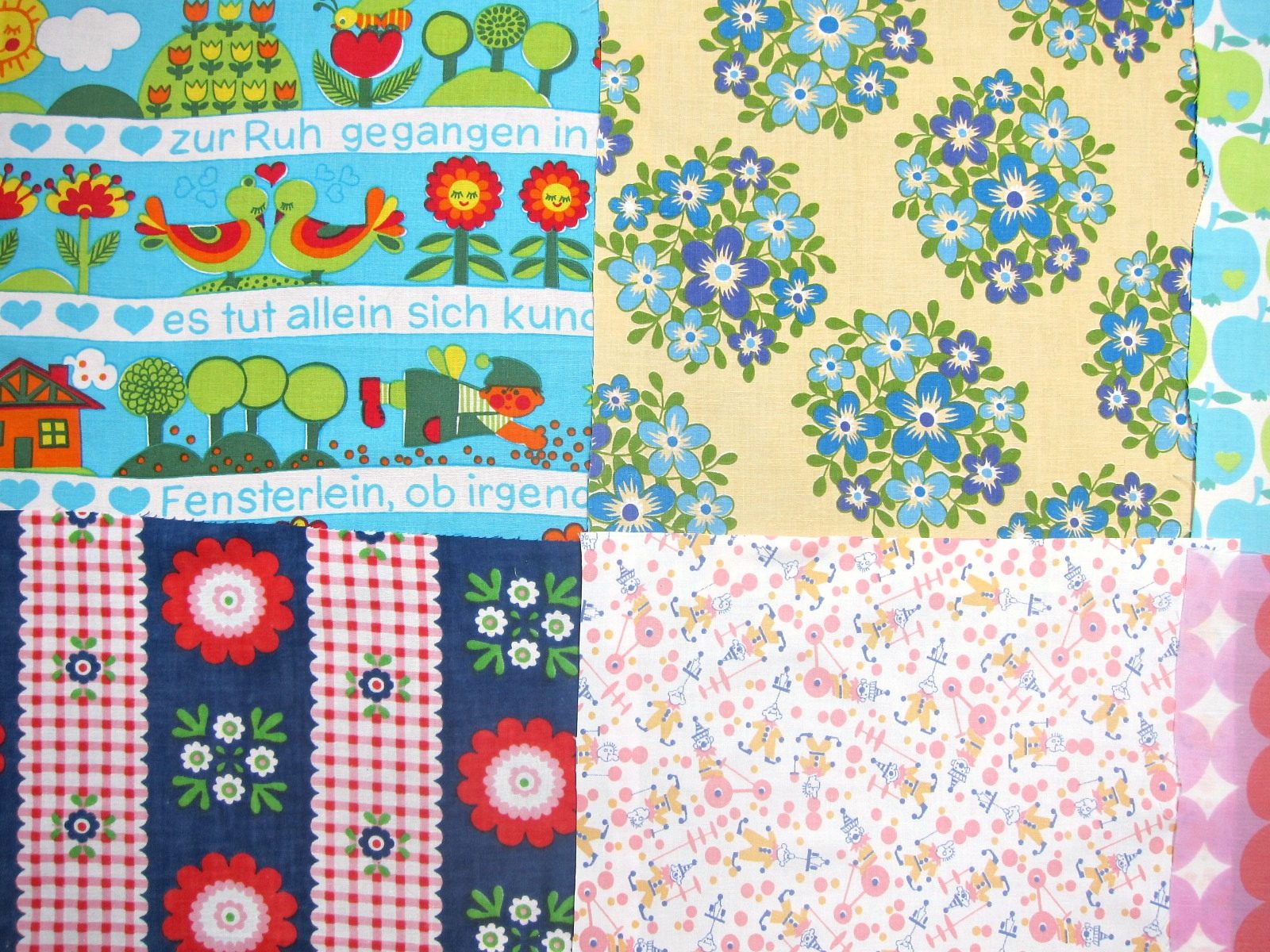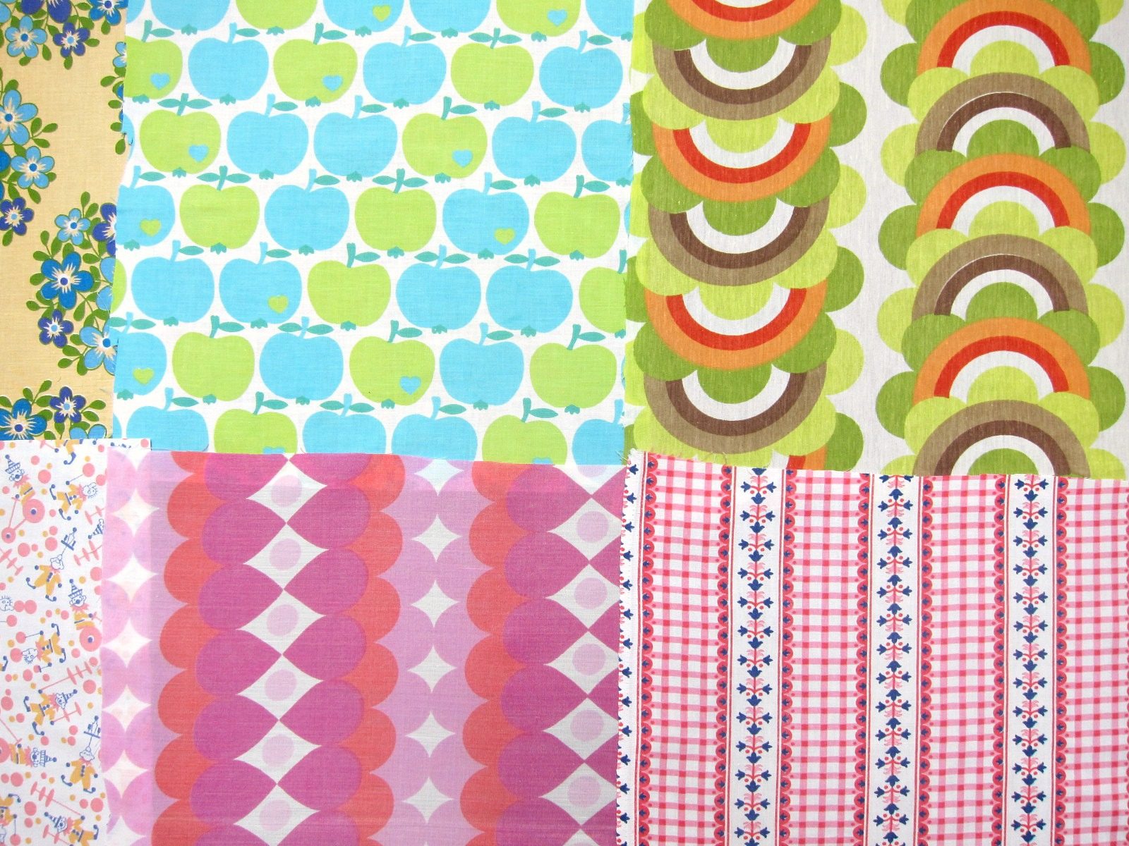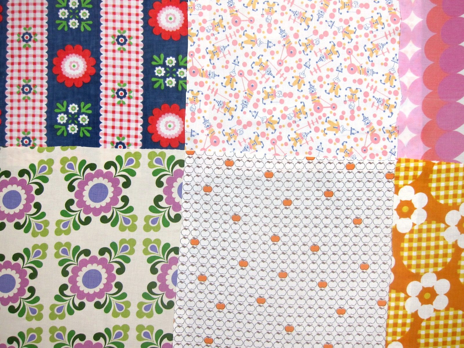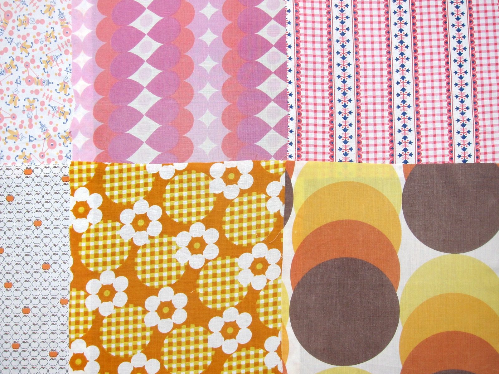 70年代のノスタルジー溢れるヴィンテージファブリックの30センチ角はぎれを12枚セットにしました。