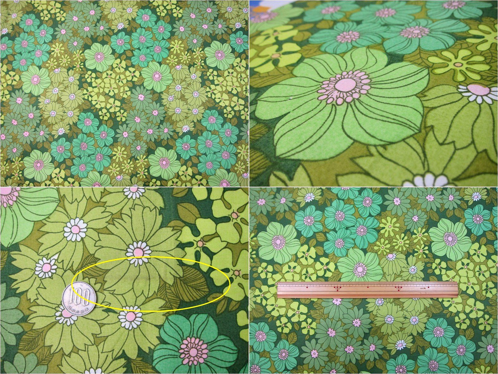 緑色の花柄ヴィンテージ生地。