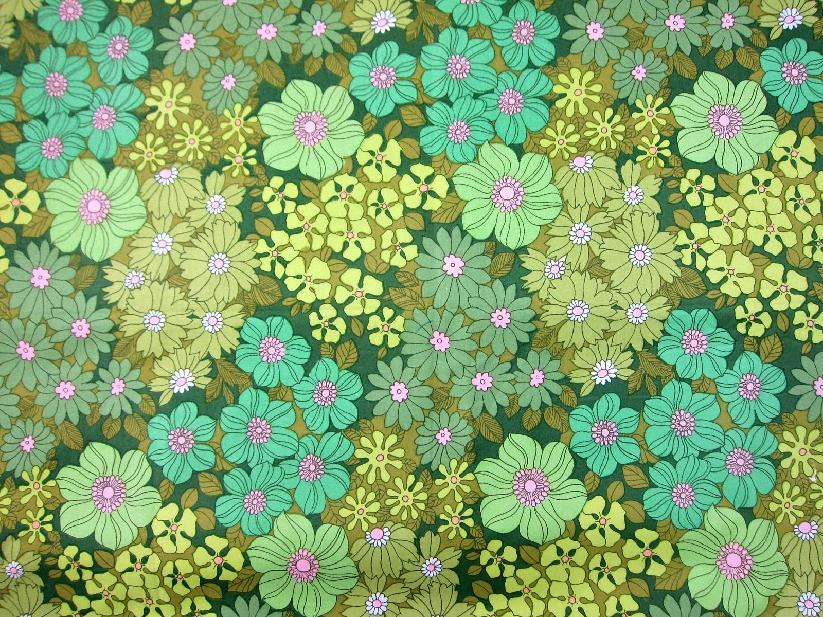 色んなグリーン色をしたお花畑が広がった、レトロでクールなパターンです。