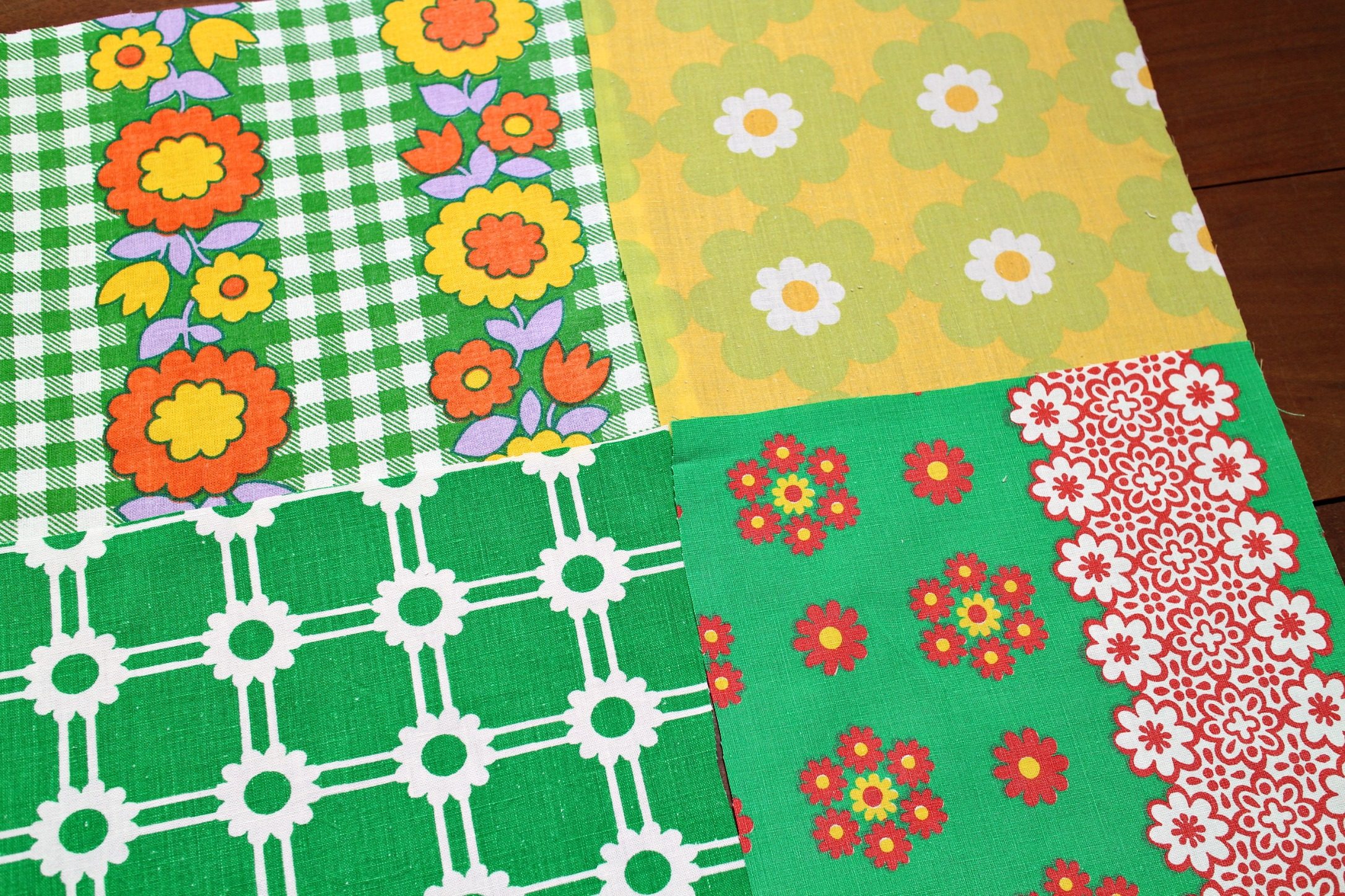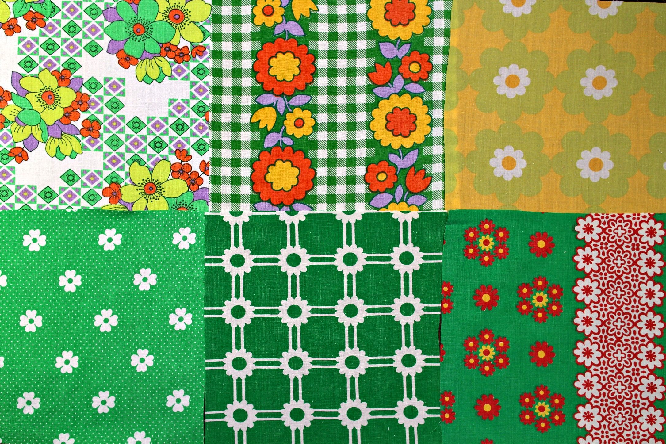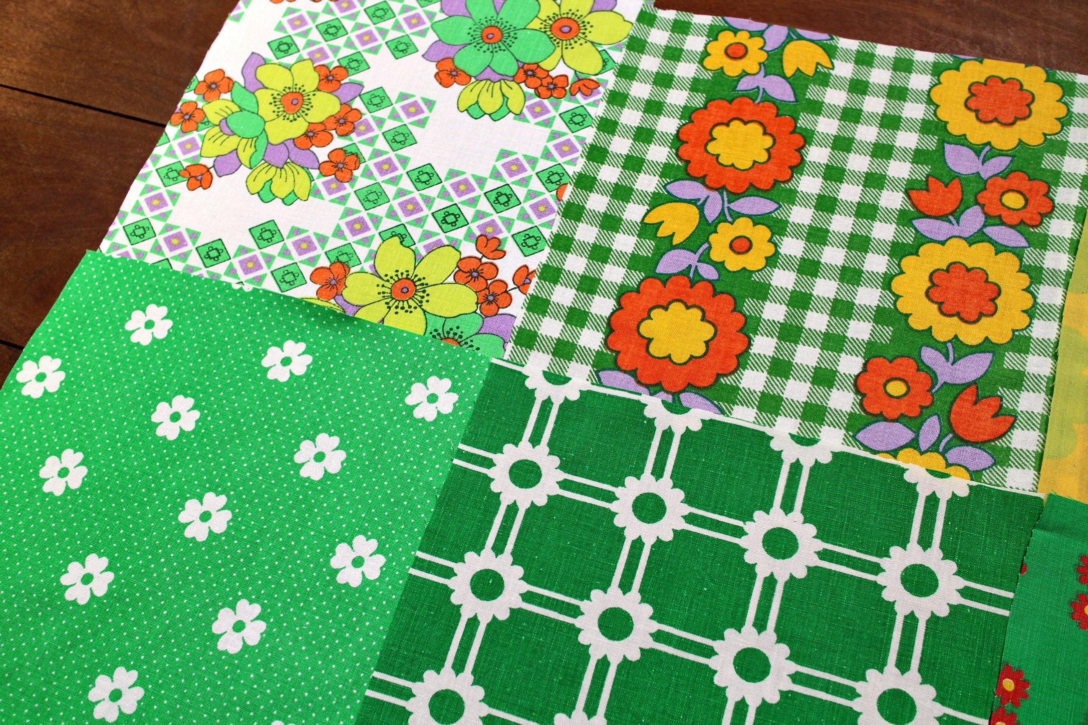 20cm角のヴィンテージはぎれが6枚入ったお得なセット。 緑系の花柄パターンのセレクション。 小物作りなどにどうぞ。