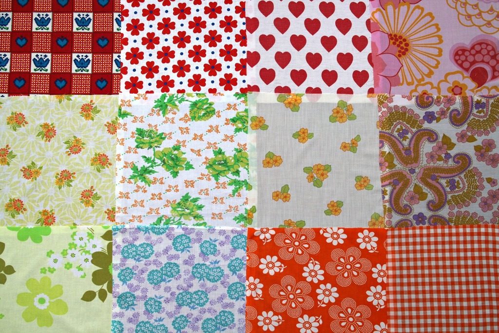 コンテンツにスキップサイケな花柄やハート柄などレトロな魅力いっぱいカットクロス12枚セット