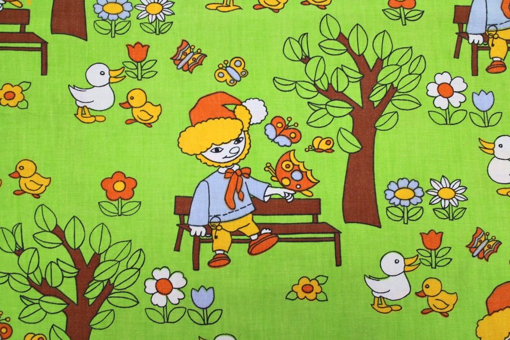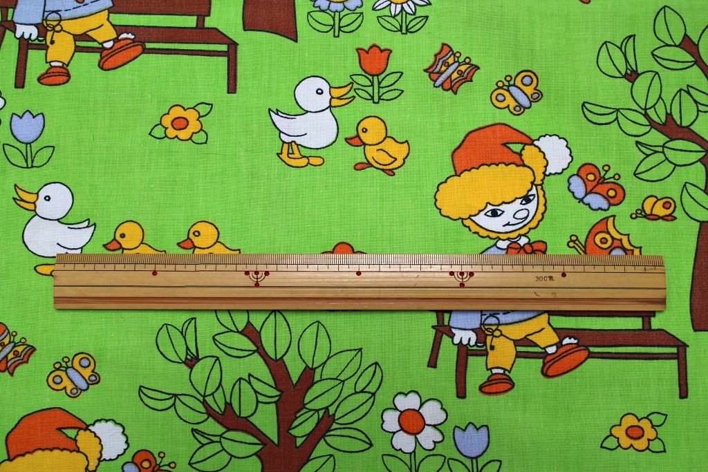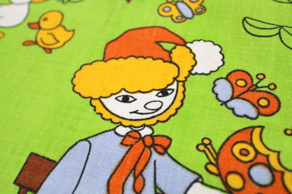 ザントマン 子ども柄ヴィンテージ生地 グリーン 幅45cm