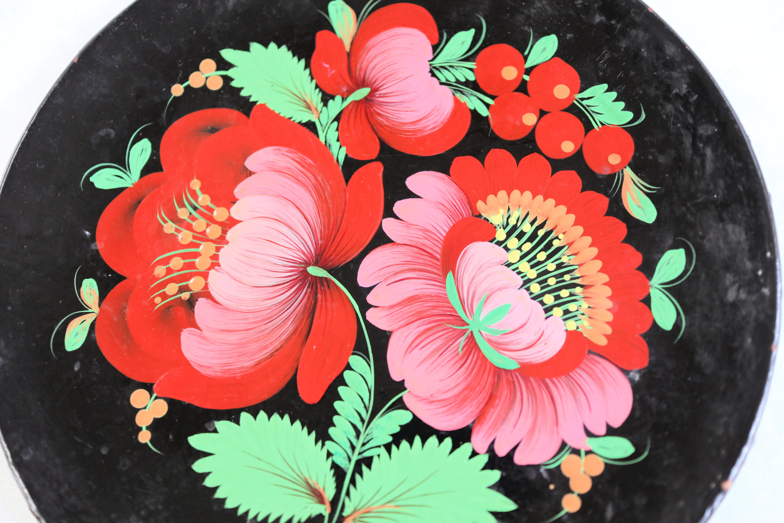 東欧の薫りをまとったレトロな木製絵皿を蚤の市で見つけました。