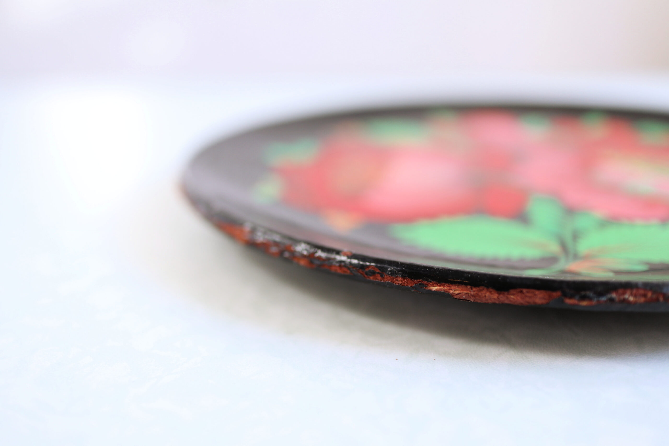 漆黒の塗りに鮮やかな赤い花。