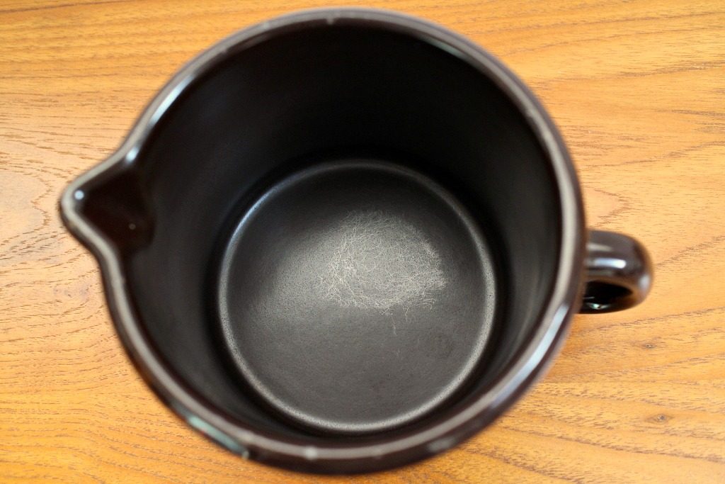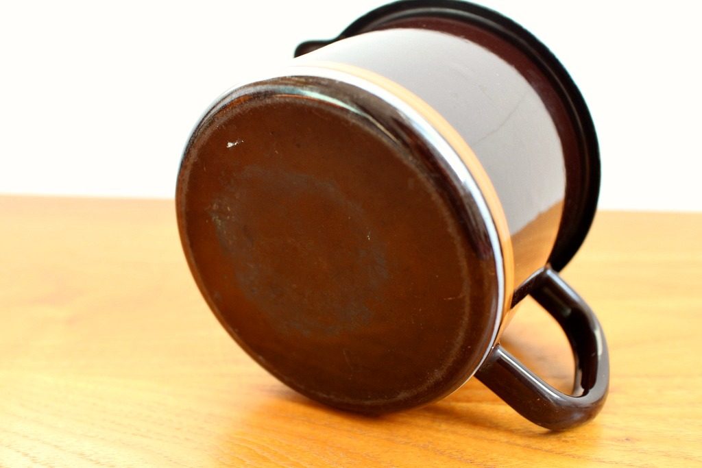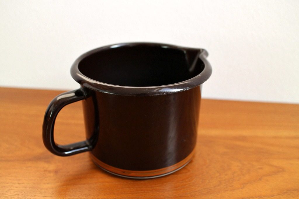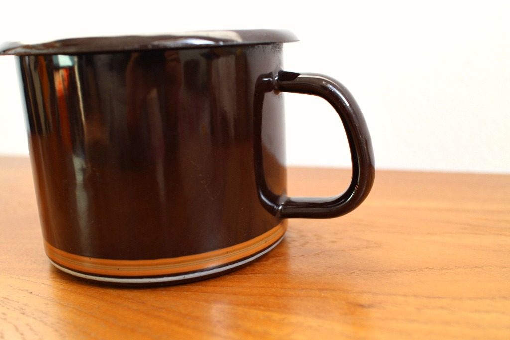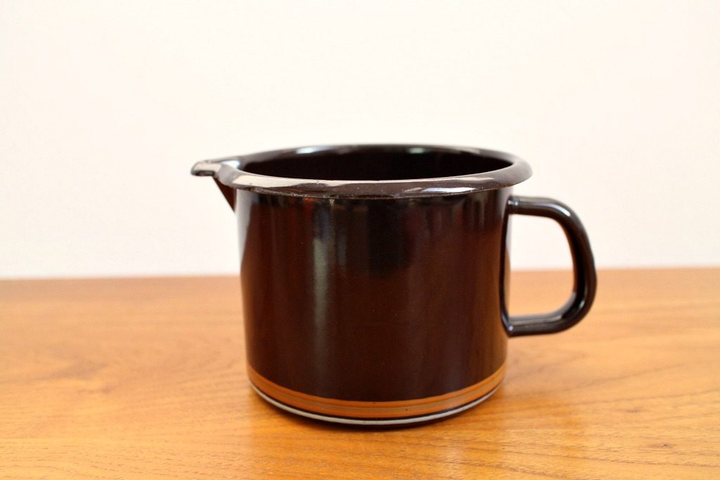 レトロ食器の定番、ホーロー製ミルク鍋(こげ茶)。