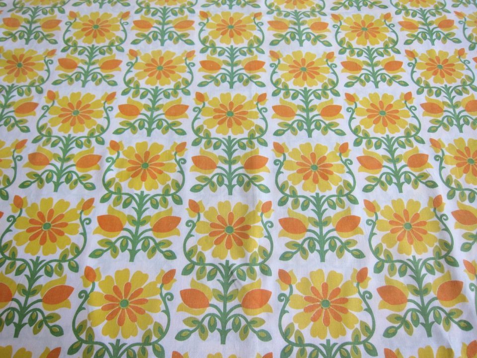 黄色いお花柄の70年代オリジナルのビンテージファブリック。