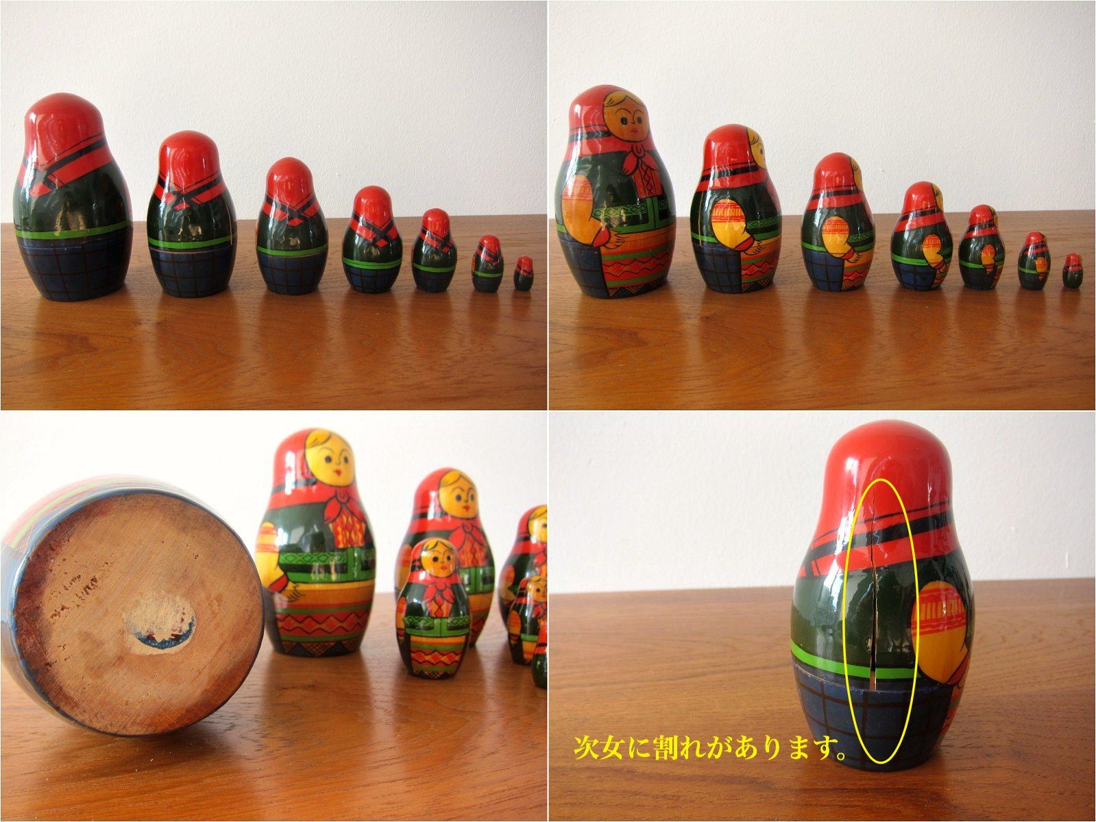 次女の側面に写真のような割れがあるのと、四女の体が少し開けづらくなっています。 全体的に良いヴィンテージコンディションです。