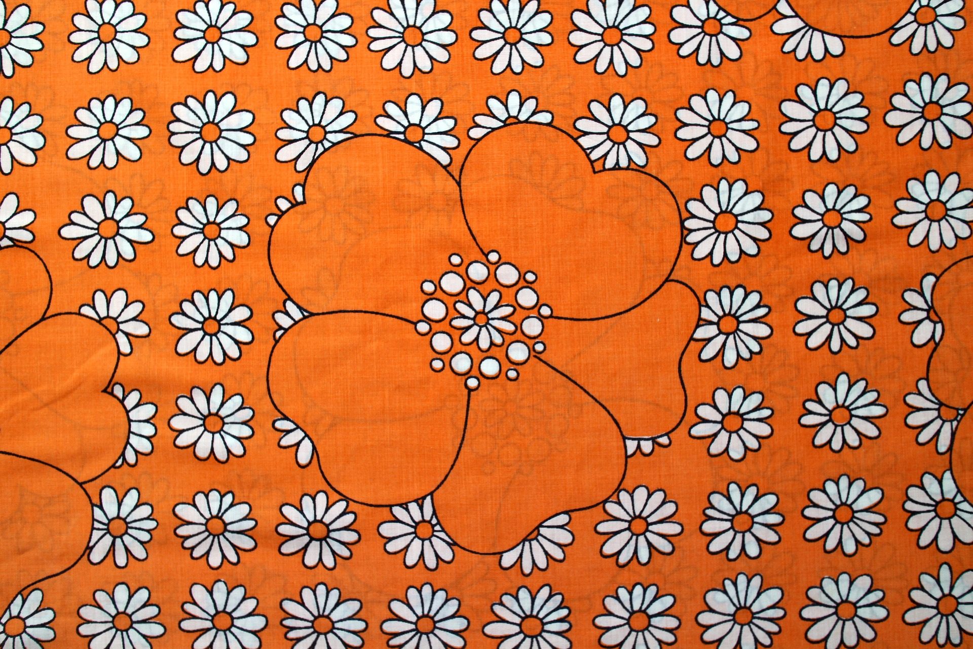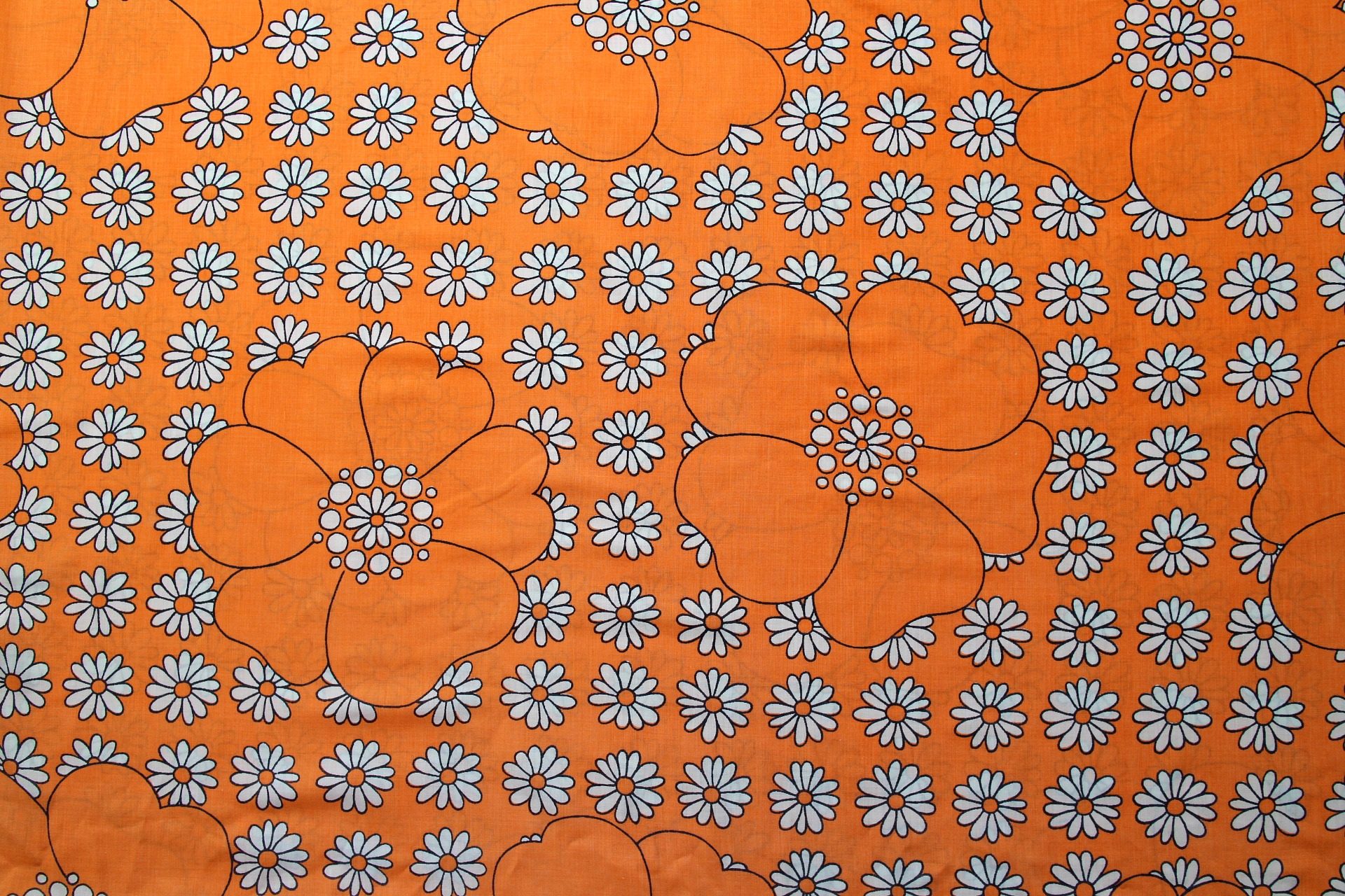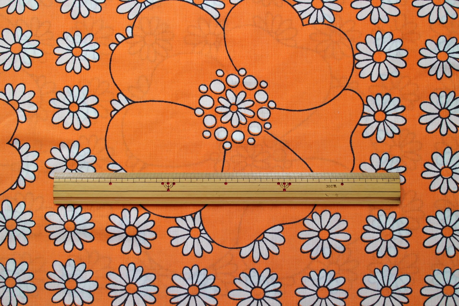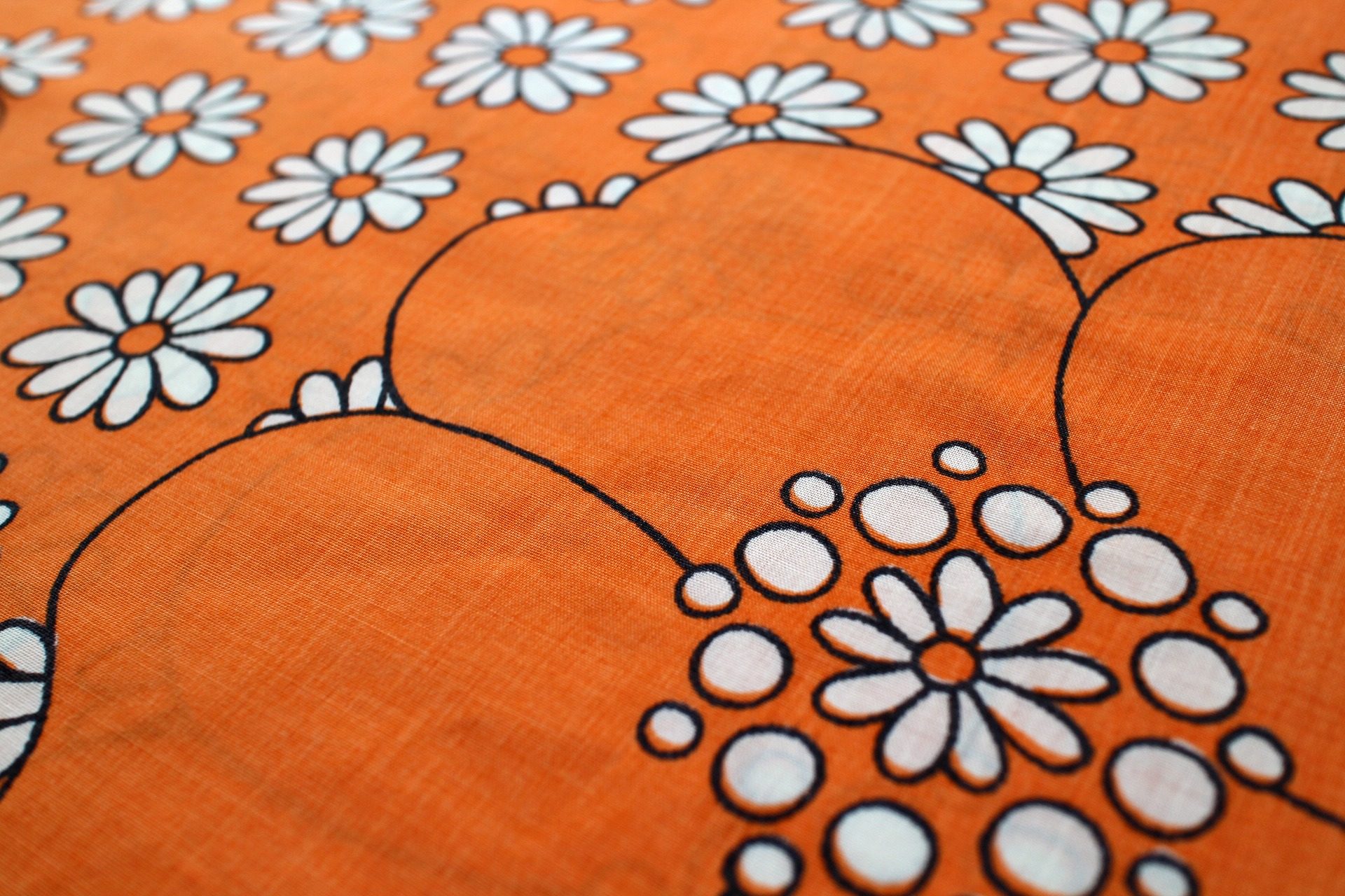 コンテンツにスキップかわいらしいデイジーが整列した鮮やかなオレンジ色のヴィンテージ生地。