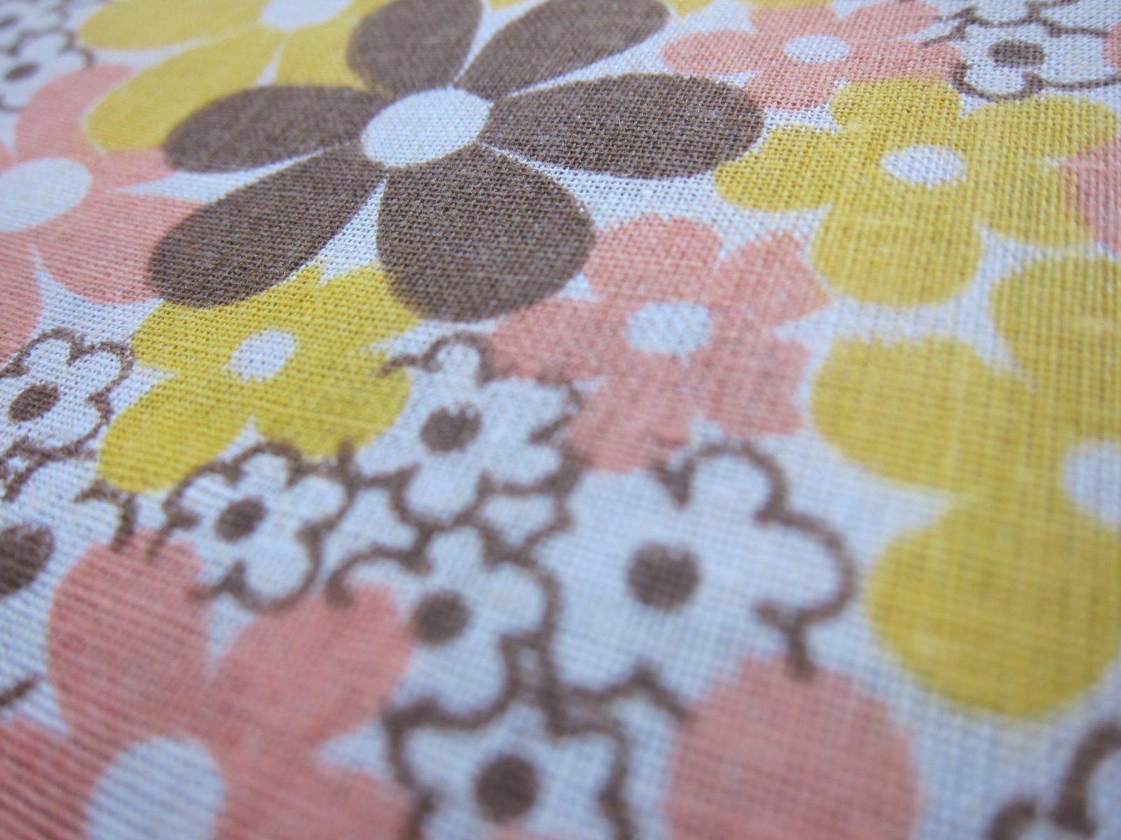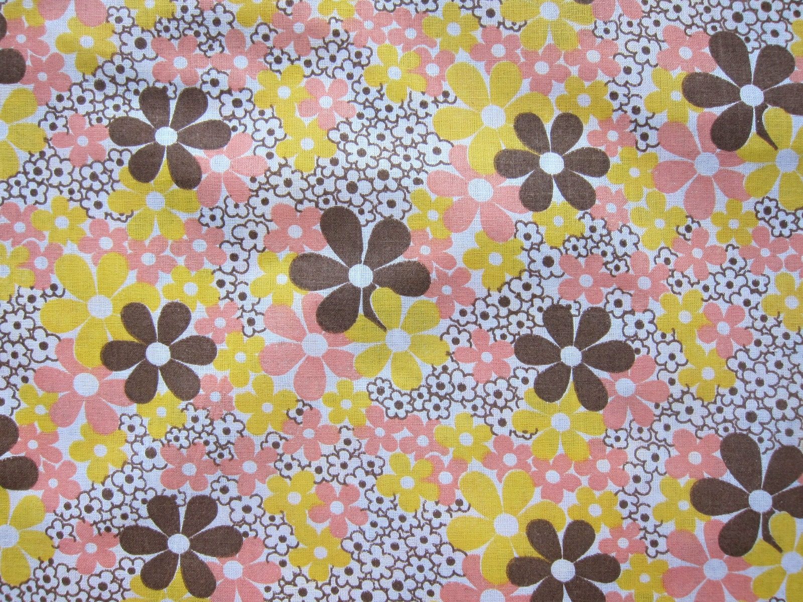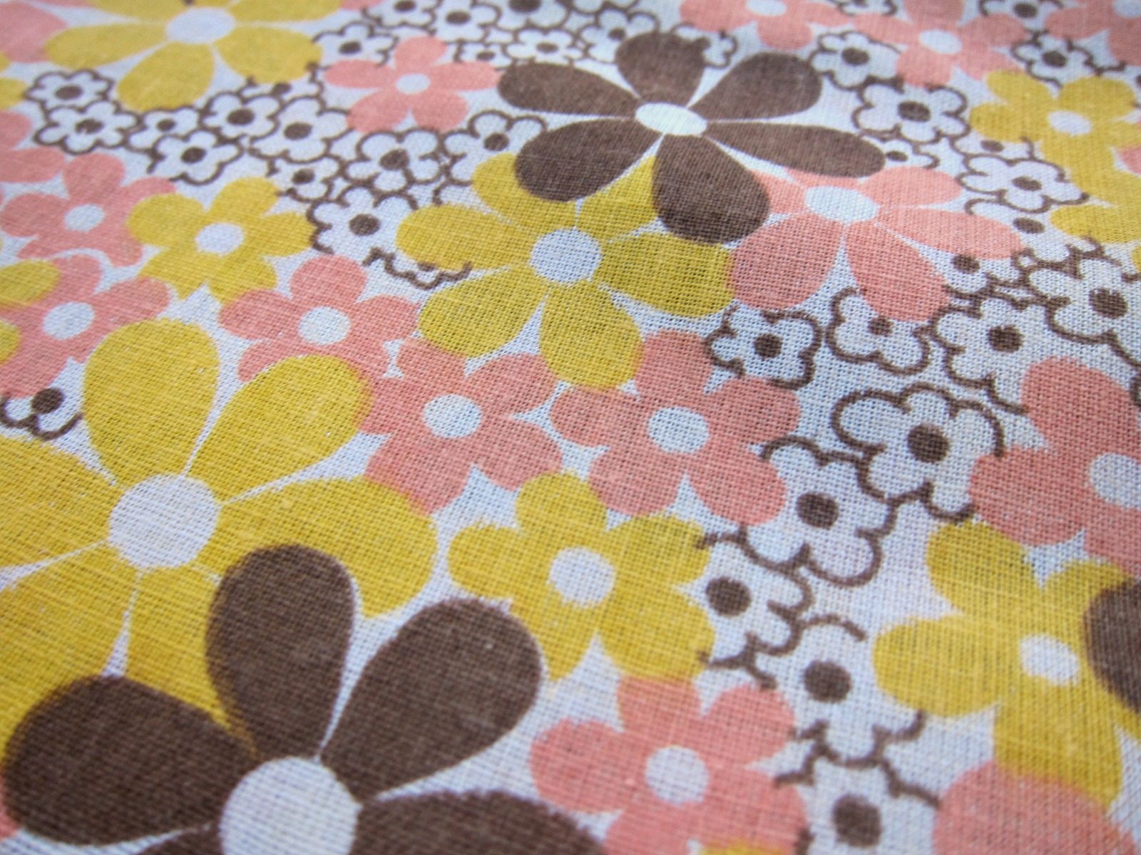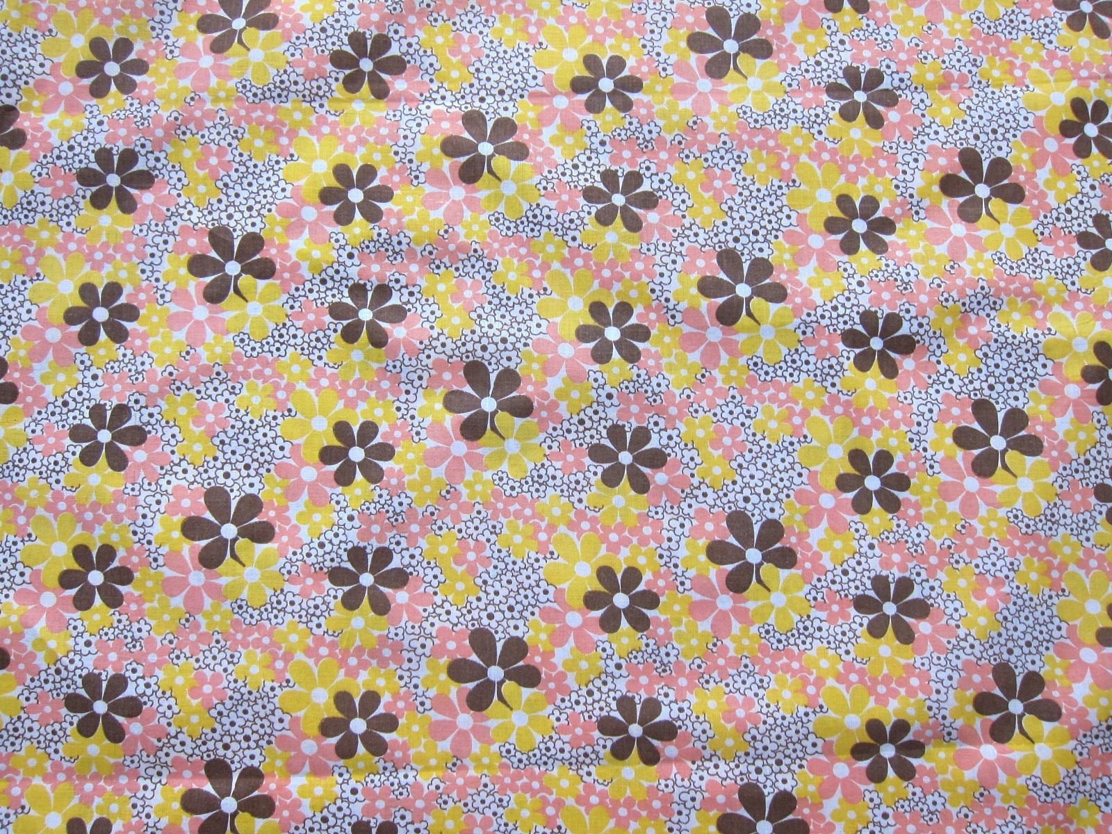 ピンクとブラウンのレトロな花柄パターン、70年代のヴィンテージファブリック。 デッドストック品で、新品・未使用の素晴らしいコンディションの布です。