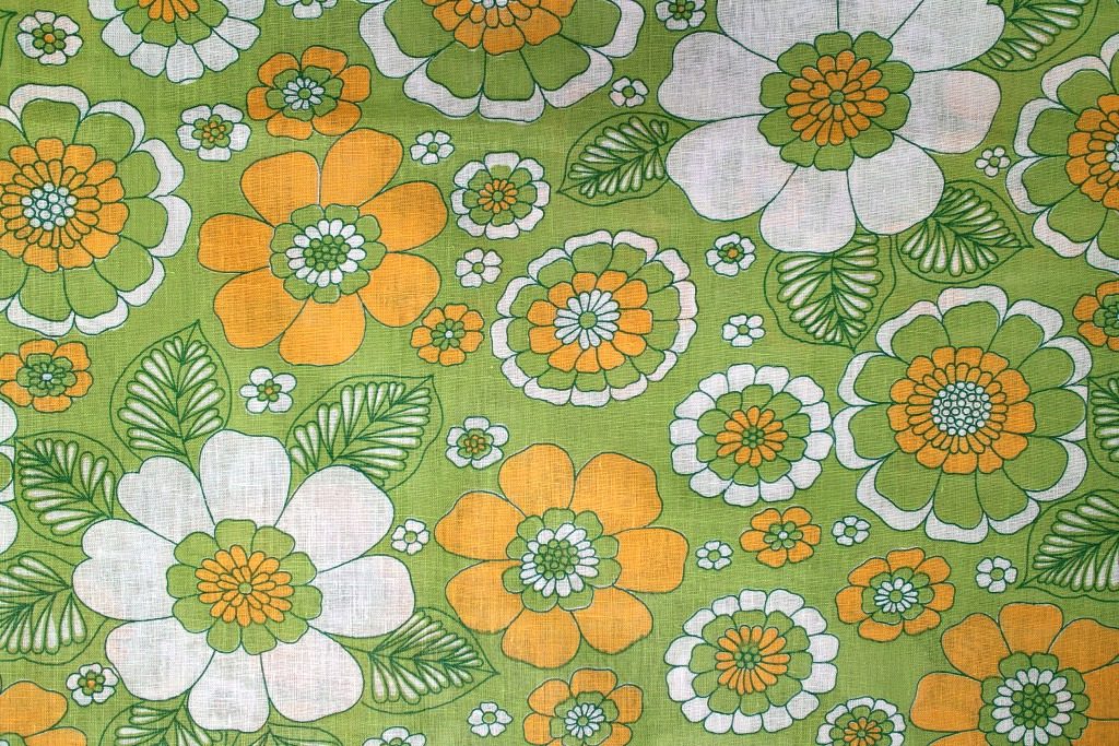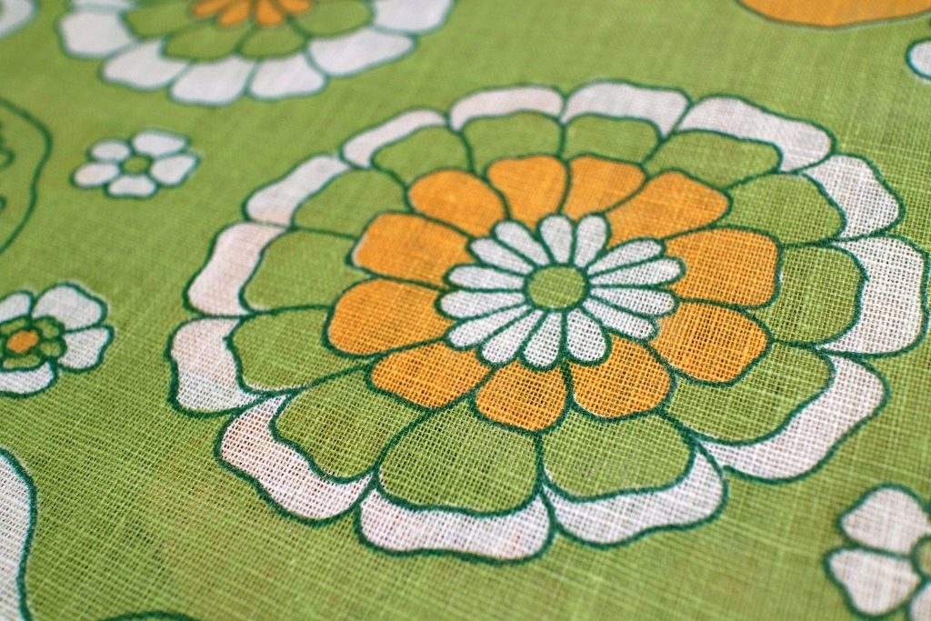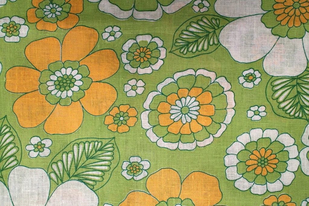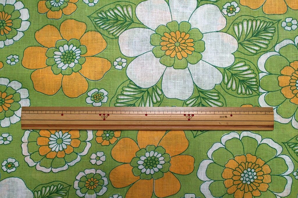 オレンジ&白のお花が大胆に咲いたクラシカルなデザインの新品ヴィンテージ生地。