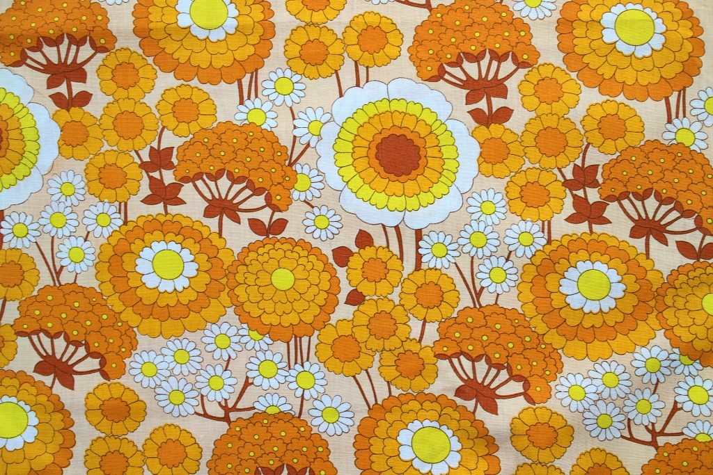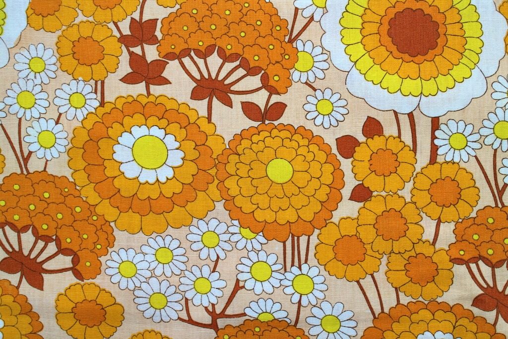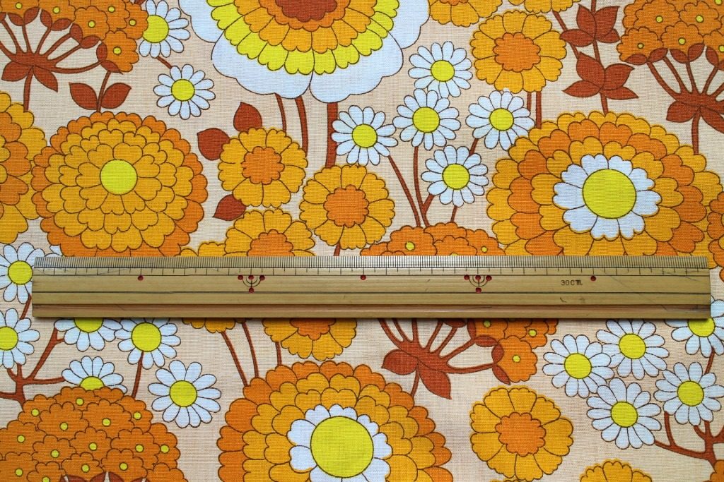 コンテンツにスキップレトロならではの優しい雰囲気がただよう花びらいっぱいのフラワーモチーフが一面に広がったヴィンテージファブリック。