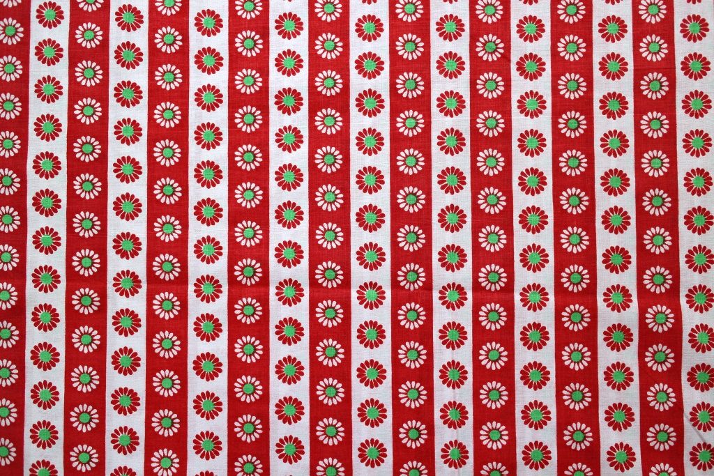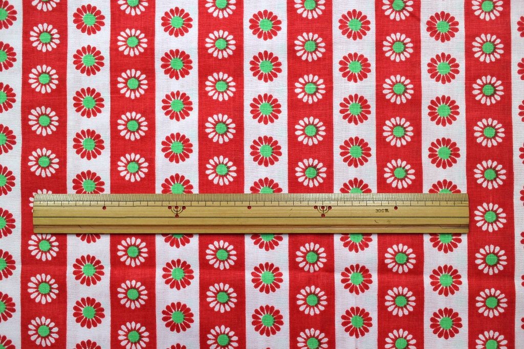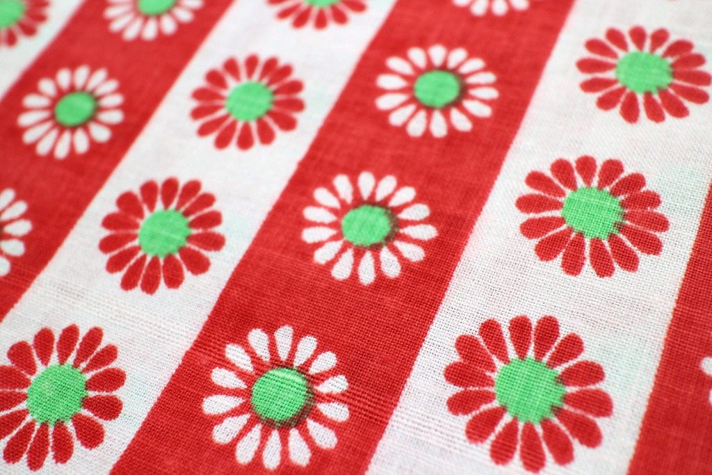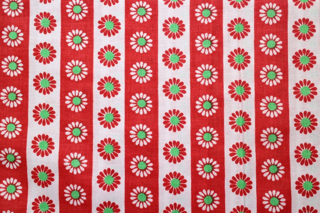 コンテンツにスキップ赤と白のストライプに可憐なデイジーを並べたキュートな魅力たっぷりのヴィンテージファブリック。