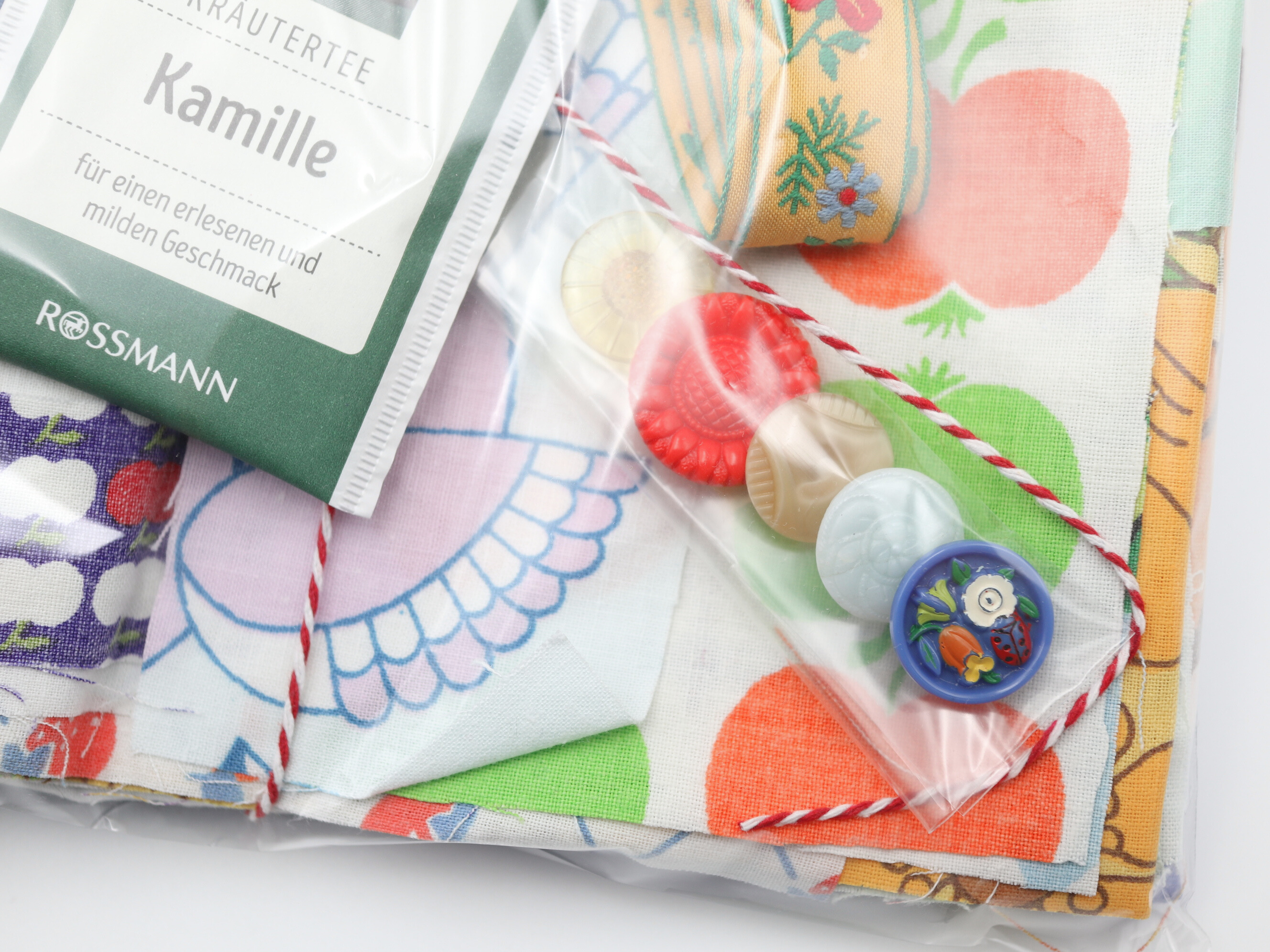 ドイツのヴィンテージ手芸セット(ファブリック・ボタン・チロルテープ・ハーブティー)