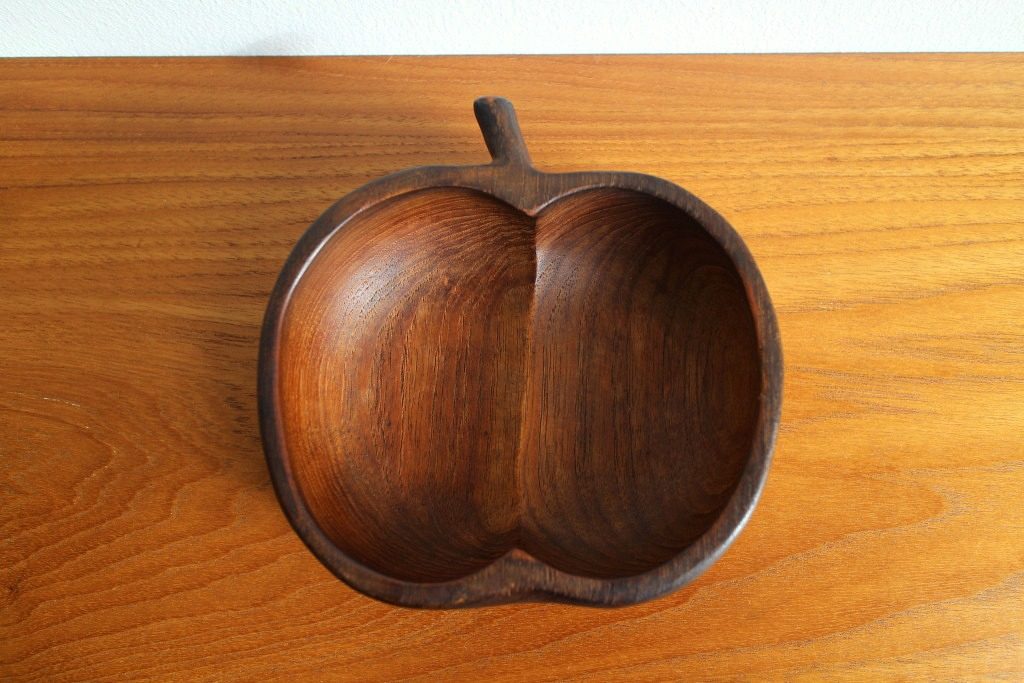 いい感じに色が馴染んだレトロならではの重厚感のある木製小物入れ。 優しい木目の入ったリンゴ型でぷっくりとしたフォルムが印象的。 蚤の市で一目惚れしたとっておきの逸品です。 アクセサリーなどを入れても。